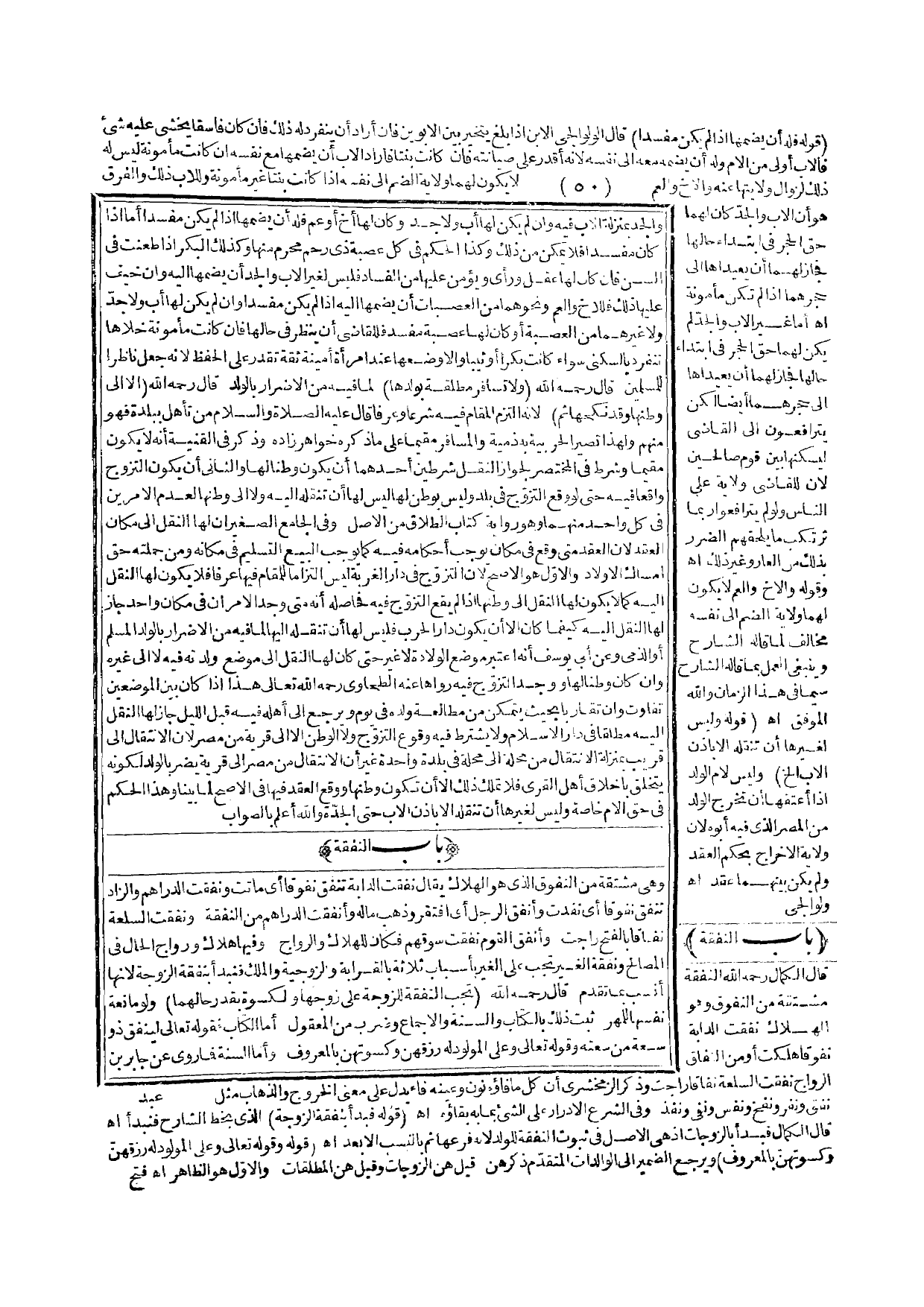 (بَابُ النَّفَقَةِ) قَالَ الْكَمَالُ - رَحِمَهُ اللَّهُ - النَّفَقَةُ مُشْتَقَّةٌ مِنْ النُّفُوقِ، وَهُوَ الْهَلَاكُ نَفَقَتْ الدَّابَّةُ نُفُوقًا هَلَكَتْ أَوْ مِنْ النَّفَاقِ الرَّوَاجُ نَفَقَتْ السِّلْعَةُ نَفَاقًا رَاجَتْ، وَذَكَرَ الزَّمَخْشَرِيّ أَنَّ كُلَّ مَا فَاؤُهُ نُونٌ وَعَيْنُهُ فَاءٌ يَدُلُّ عَلَى مَعْنَى الْخُرُوجِ وَالذَّهَابِ مِثْلُ نَفَقَ وَنَفَرَ وَنَفَخَ وَنَفِسَ وَنَفَى وَنَفَذَ، وَفِي الشَّرْعِ الْإِدْرَارُ عَلَى الشَّيْءِ بِمَا بِهِ بَقَاؤُهُ. اهـ. (قَوْلُهُ فَبَدَأَ بِنَفَقَةِ الزَّوْجَةِ) الَّذِي بِخَطِّ الشَّارِحِ فَنَبْدَأُ اهـ قَالَ الْكَمَالُ فَبَدَأَ بِالزَّوْجَاتِ إذْ هِيَ الْأَصْلُ فِي ثُبُوتِ النَّفَقَةِ لِلْوَلَدِ لِأَنَّهُ فَرْعُهَا ثُمَّ بِالنَّسَبِ الْأَبْعَدِ. اهـ. (قَوْلُهُ وقَوْله تَعَالَى {وَعَلَى الْمَوْلُودِ لَهُ رِزْقُهُنَّ وَكِسْوَتُهُنَّ بِالْمَعْرُوفِ} [البقرة: 233] وَيَرْجِعُ الضَّمِيرُ إلَى الْوَالِدَاتِ الْمُتَقَدِّمِ ذِكْرُهُنَّ قِيلَ هُنَّ الزَّوْجَاتُ، وَقِيلَ هُنَّ الْمُطَلَّقَاتُ، وَالْأَوَّلُ هُوَ الظَّاهِرُ. اهـ. فَتْحٌ
