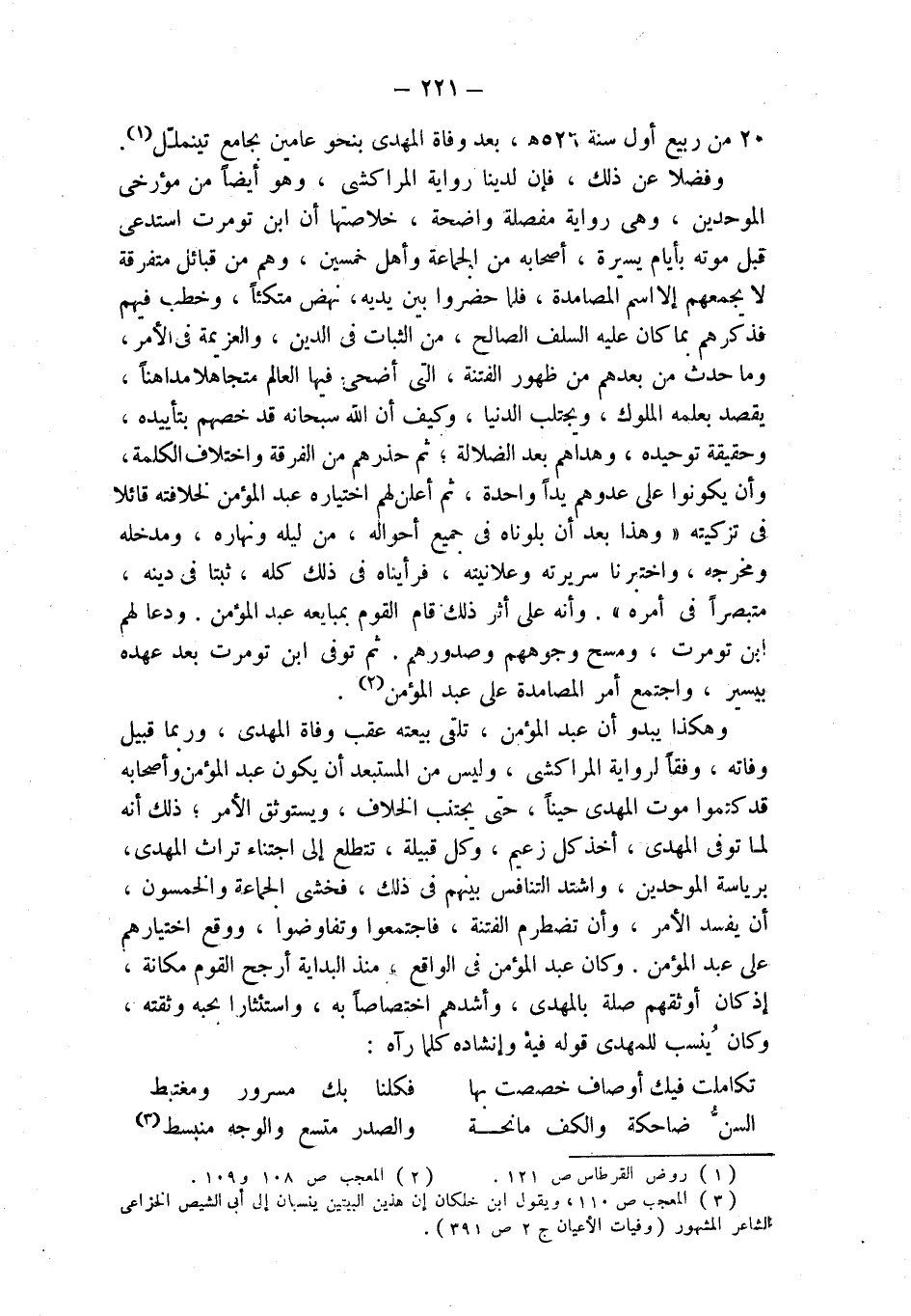 (¬3) المعجب ص 110، ويقول ابن خلكان إن هذين البيتين ينسبان إلى أبى الشيص الخزاعي الشاعر المشهور (وفيات الأعيان ج 2 ص 391).