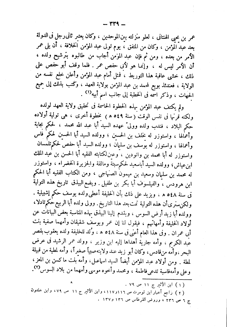 (¬2) راجع أخبار ابن تومرت ص 116 و 117، وابن الأثير ج 11 ص 79، وابن خلدون ج 6 ص 236، وروض القرطاس ص 136 و 137.