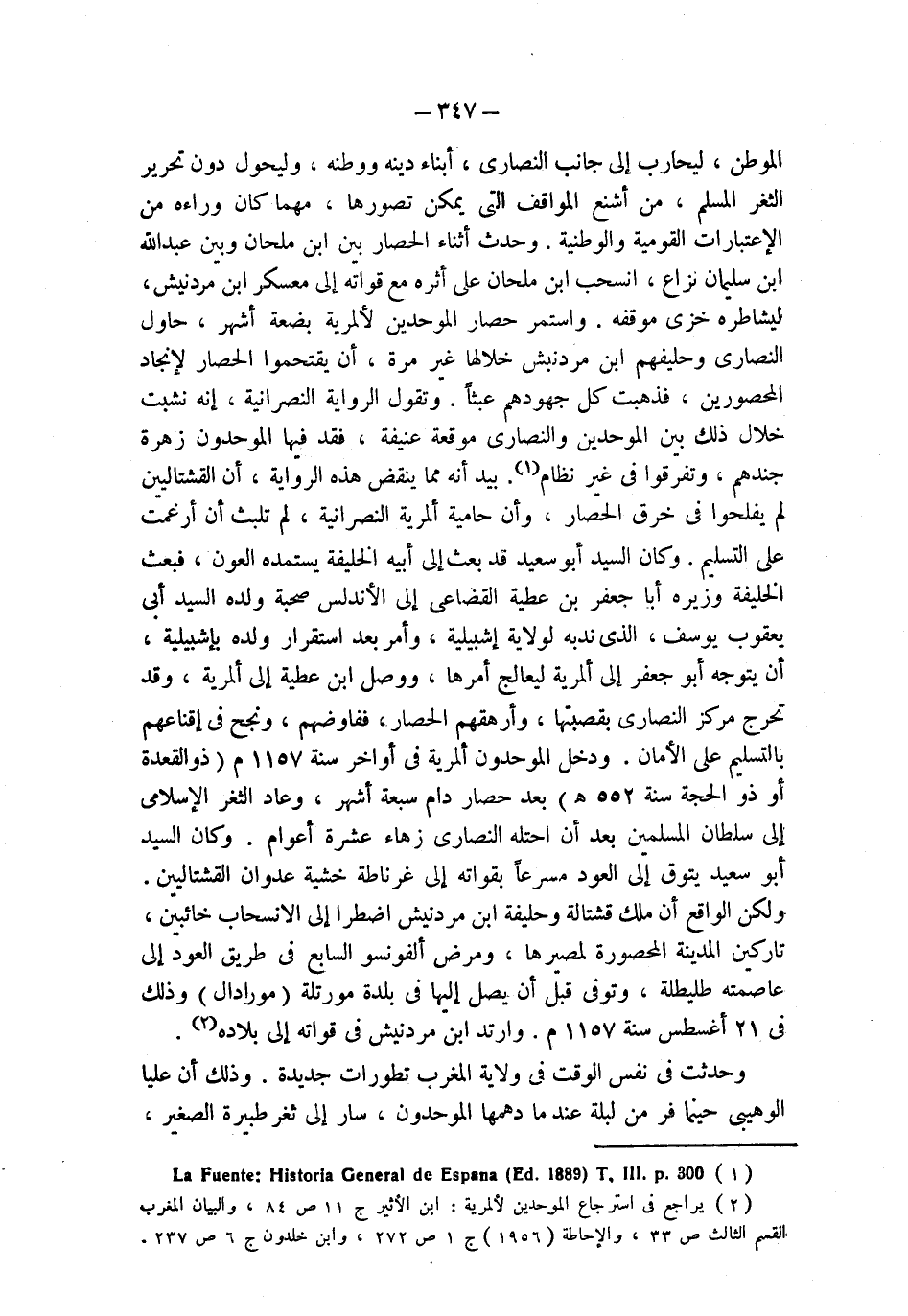 (¬2) يراجع في استرجاع الموحدين لألمرية: ابن الأثير ج 11 ص 84، والبيان المغرب القسم الثالث ص 33، والإحاطة (1956) ج 1 ص 272، وابن خلدون ج 6 ص 237.