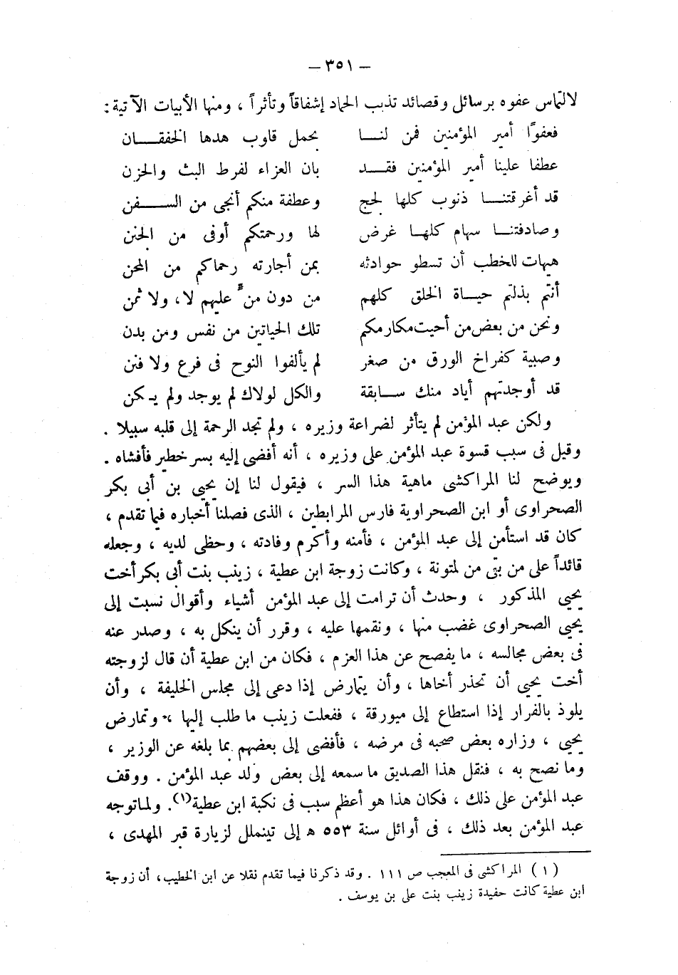 (¬1) المراكشي في المعجب ص 111. وقد ذكرنا فيما تقدم نقلا عن ابن الخطيب، أن زوجة ابن عطية كانت حفيدة زينب بنت علي بن يوسف.