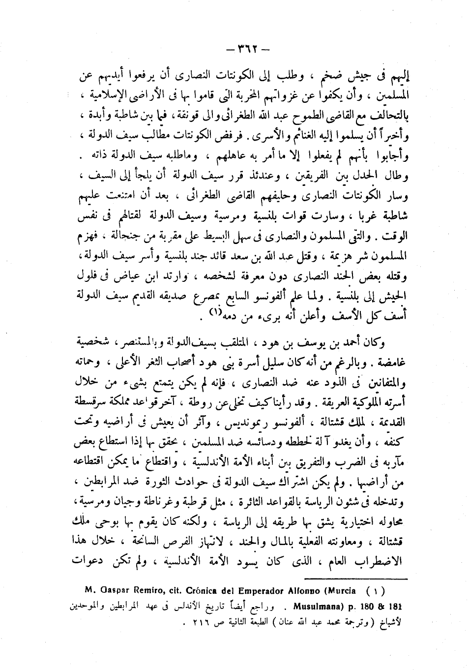 (¬1) M. Gaspar Remiro, cit. Cronica del Emperador Alfonso (Murcia Musulmana) p. 180 & 181. وراجع أيضاً تاريخ الأندلس في عهد المرابطين والموحدين لأشباخ (وترجمة محمد عبد الله عنان) الطبعة الثانية ص 216.