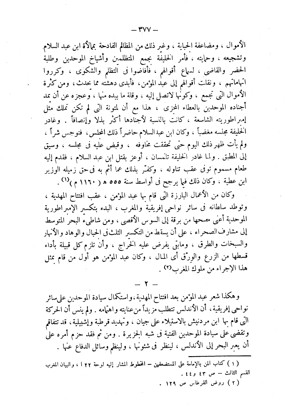 (¬1) كتاب المن بالإمامة على المستضعفين - المخطوط المشار إليه لوحة 22 أ، والبيان المغرب القسم الثالث - ص 43 و 44.