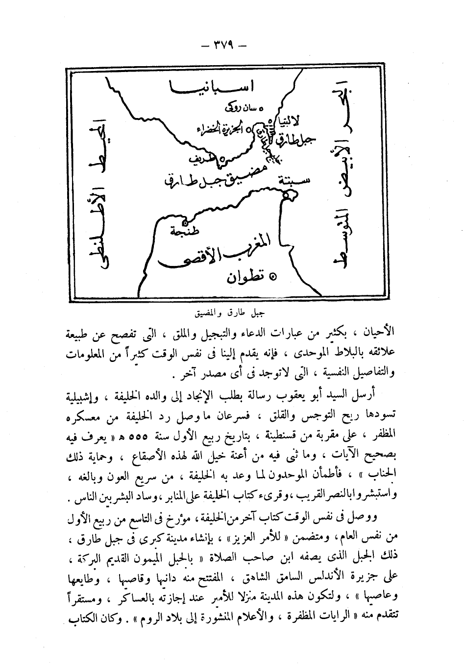 ووصل في نفس الوقت كتاب آخر من الخليفة، مؤرخ في التاسع من ربيع الأول من نفس العام، ومتضمن " للأمر العزيز"، بإنشاء مدينة كبرى في جبل طارق، ذلك الجبل الذي يصفه ابن صاحب الصلاة " بالجبل الميمون القديم البركة، على جزيرة الأندلس السامق الشاهق، المفتتح منه دانيها وقاصيها، وطايعها وعاصيها "، ولتكون هذه المدينة منزلا للأمير عند إجازته بالعساكر، ومستقراً تتقدم منه " الرايات المظفرة، والأعلام المنشورة إلى بلاد الروم ". وكان الكتاب