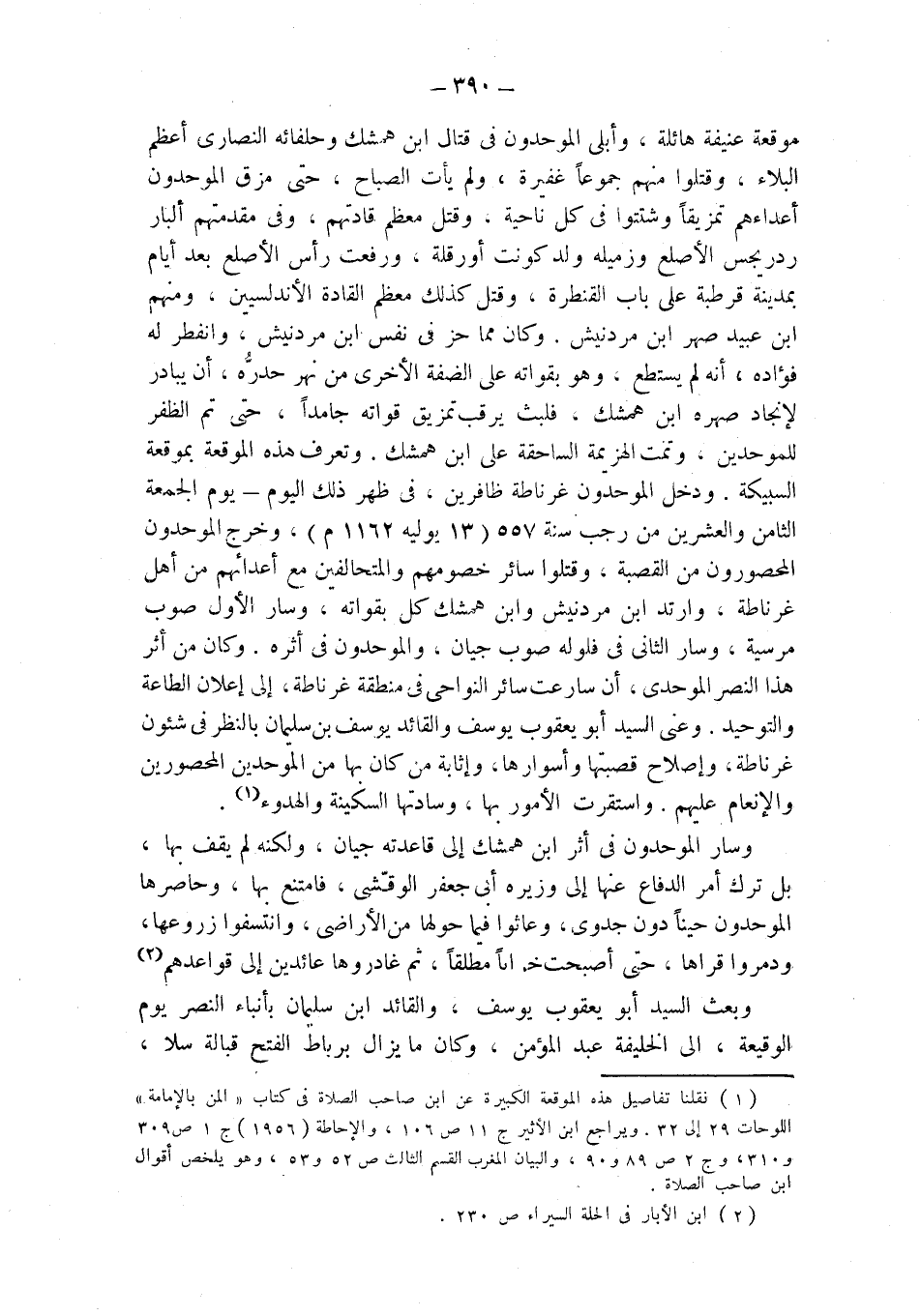 (¬1) نقلنا تفاصيل هذه الموقعة الكبيرة عن ابن صاحب الصلاة في كتاب " المن بالإمامة " اللوحات 29 إلى 32. ويراجع ابن الأثير ج 11 ص 106، والإحاطة (1956) ج 1 ص 309 و 310، وج 2 ص 89 و 90، والبيان المغرب القسم الثالث ص 52 و 53، وهو يلخص أقوال ابن صاحب الصلاة.