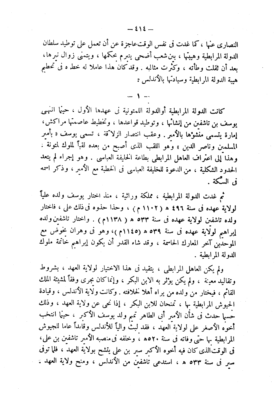 النصارى عنها، كما غدت في نفس الوقت عاجزة عن أن تعمل على توطيد سلطان الدولة المرابطية وهيبتها، بين شعب أضحى يتبرم بحكمها، ويتمنى زوال نيرها، بعد أن ثقلت وطأته، وكثرت مثالبه. وقد كان هذا عاملا له خطره في تحطيم هيبة الدولة المرابطية وسيادتها بالأندلس.