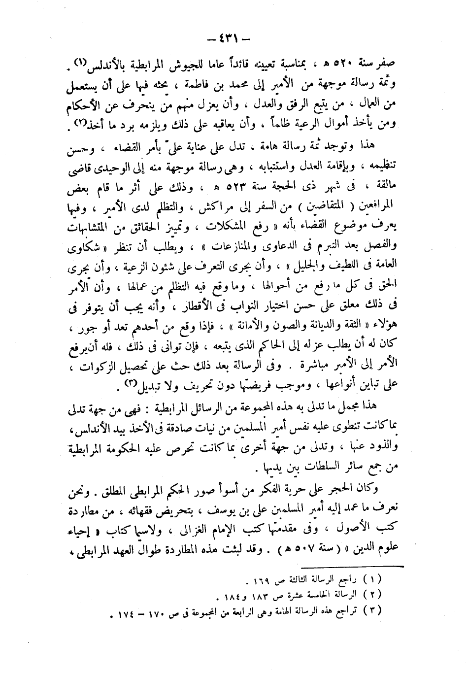 (¬1) راجع الرسالة الثالثة ص 169.