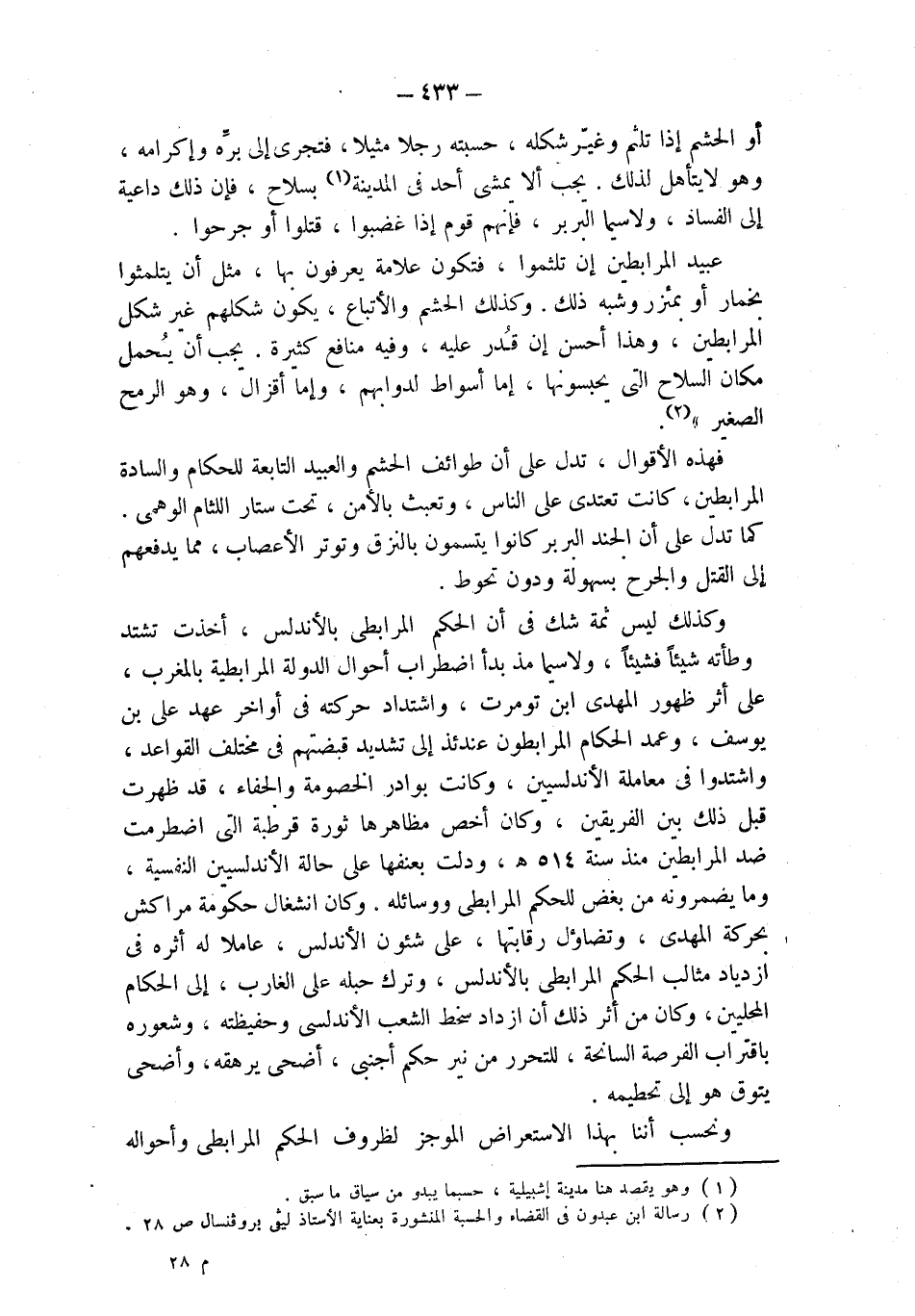 (¬2) رسالة ابن عبدون في القضاء والحسبة المنشورة بعناية الأستاذ ليفي بروفنسال ص 28.