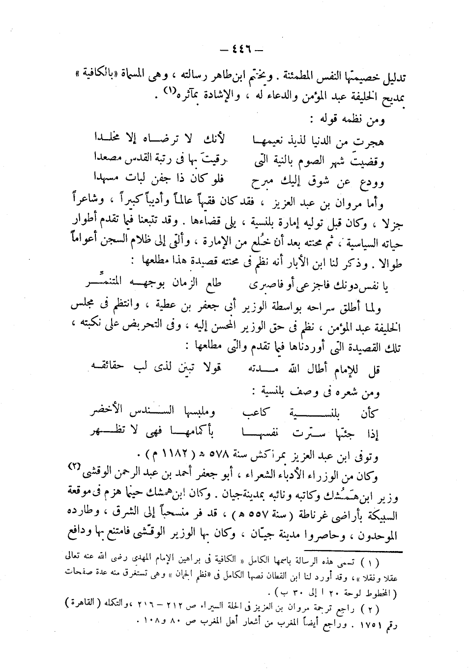 (¬2) راجع ترجمة مروان بن عبد العزيز في الحلة السيراء ص 212 - 216، والتكملة (القاهرة) رقم 1751. وراجع أيضاً المغرب من أشعار أهل المغرب ص 80 و 108.