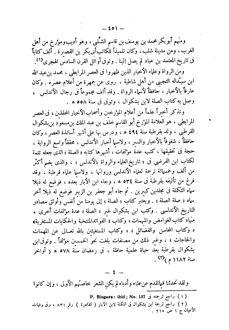 (¬2) راجع ترجمة ابن بشكوال في التكملة لابن الأبار (القاهرة) رقم 831، وفي وفيات الأعيان ج 1 ص 215.
