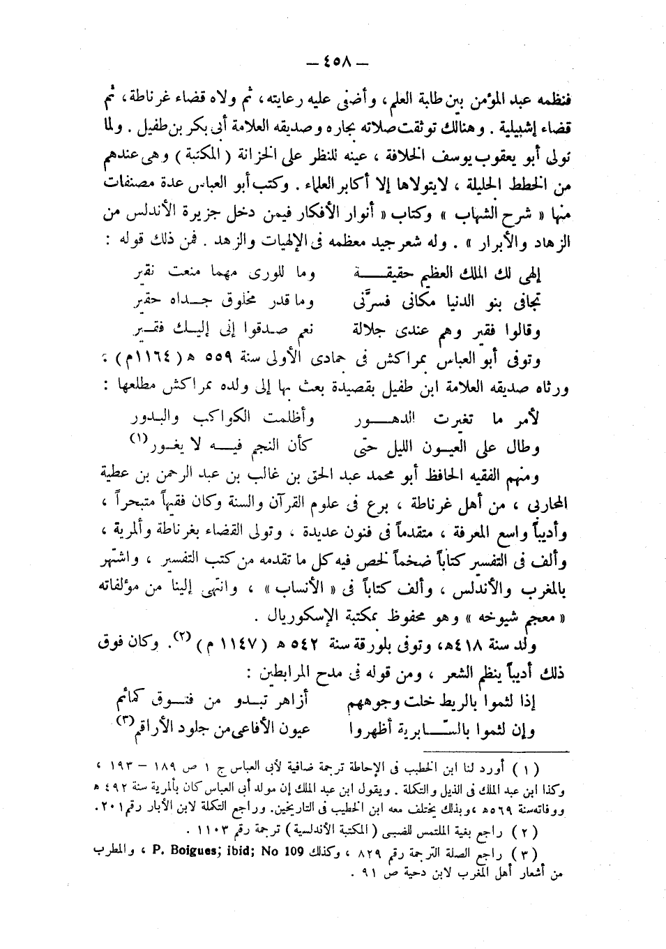 (¬3) راجع الصلة الترجمة رقم 829، وكذلك P. Boigues: ibid ; No 109، والمطرب من أشعار أهل المغرب لابن دحية ص 91.