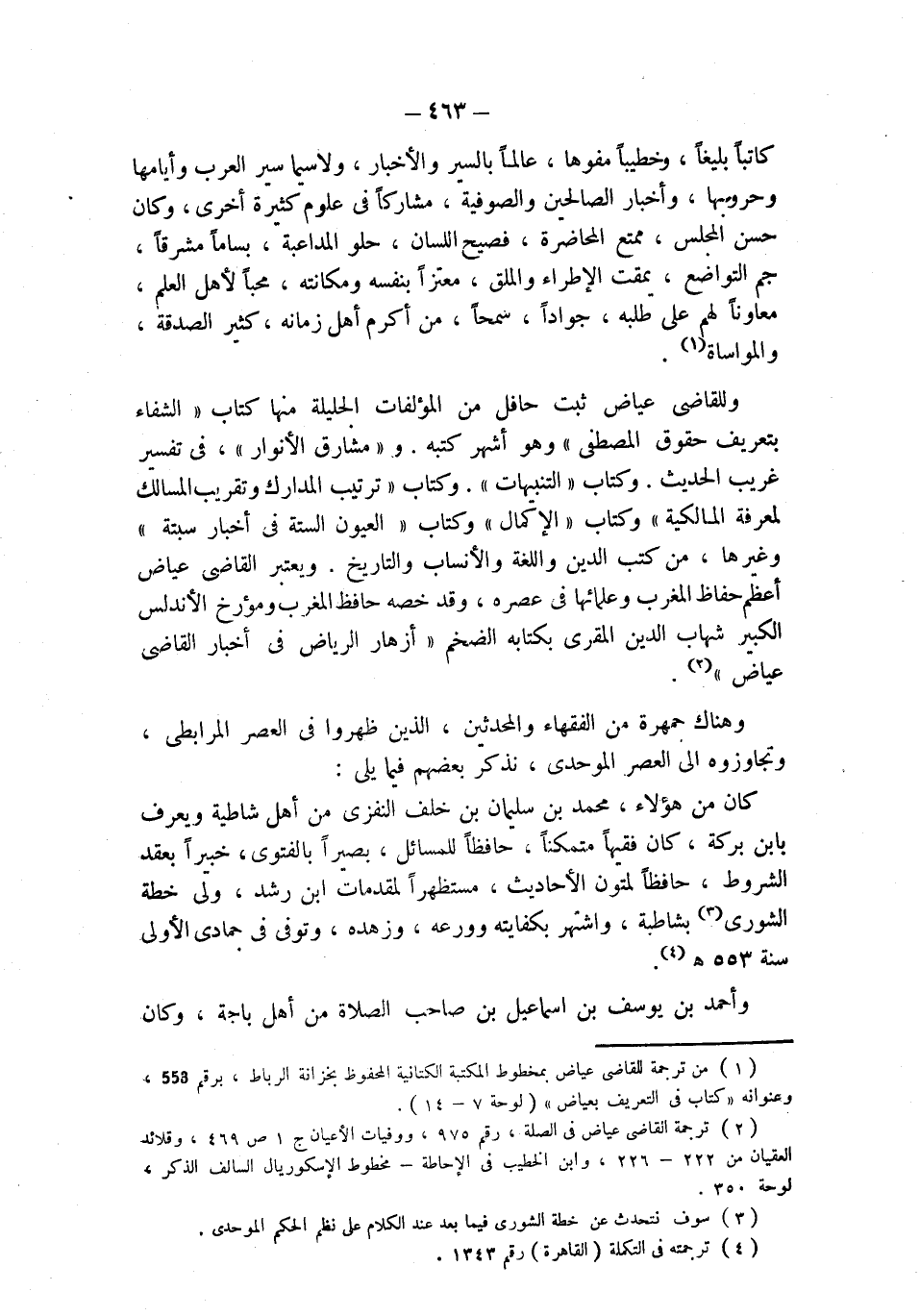 (¬2) ترجمة القاضي عياض في الصلة، رقم 975، ووفيات الأعيان ج 1 ص 469، وقلائد العقيان من 222 - 226، وابن الخطيب في الإحاطة - مخطوط الإسكوريال السالف الذكر، لوحة 350.