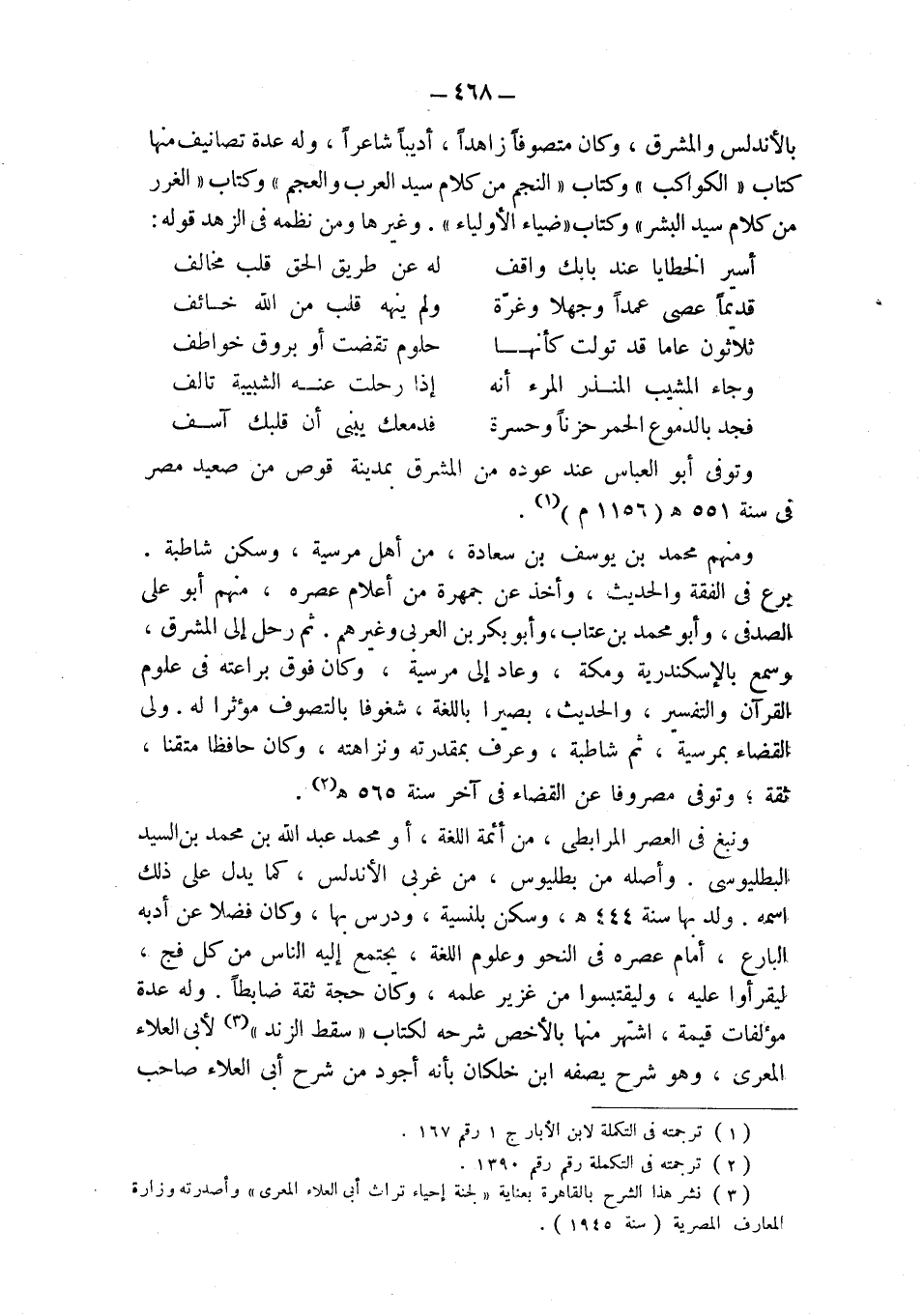 (¬3) نشر هذا الشرح بالقاهرة بعناية " لجنة إحياء تراث أبى العلاء المعري " وأصدرته وزارة المعارف المصرية (سنة 1945).
