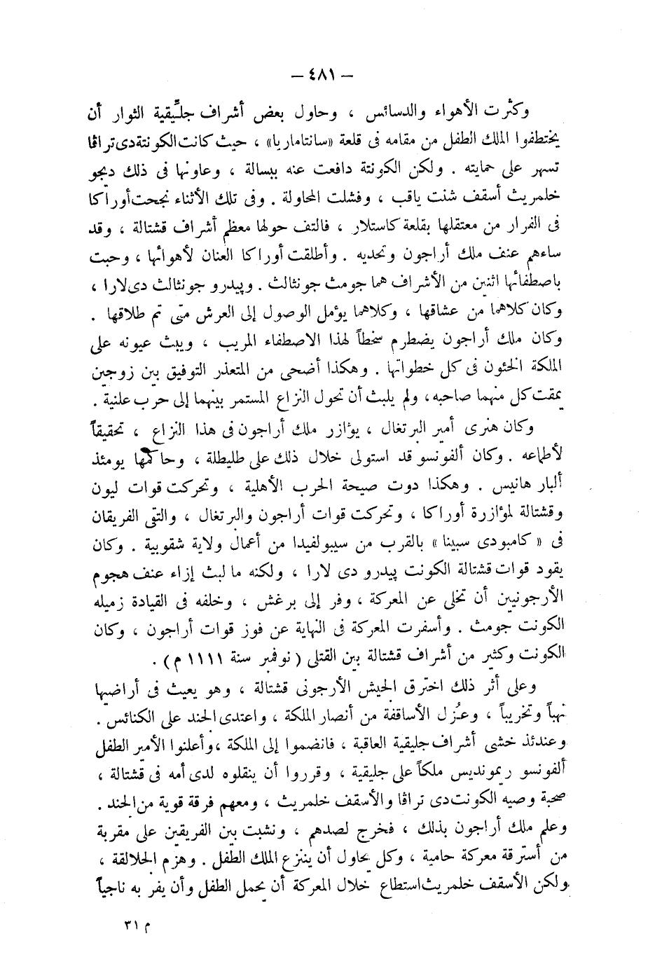 وكان ملك أراجون يضطرم سخطاً لعذا الاصطفاء المريب، ويبث عيونه على الملكة الخئون في كل خطواتها. وهكذا أضحى من المتعذر التوفيق بين زوجين يمقت كل منهما صاحبه، ولم يلبث أن تحول النزاع المستمر بينهما إلى حرب علنية.
