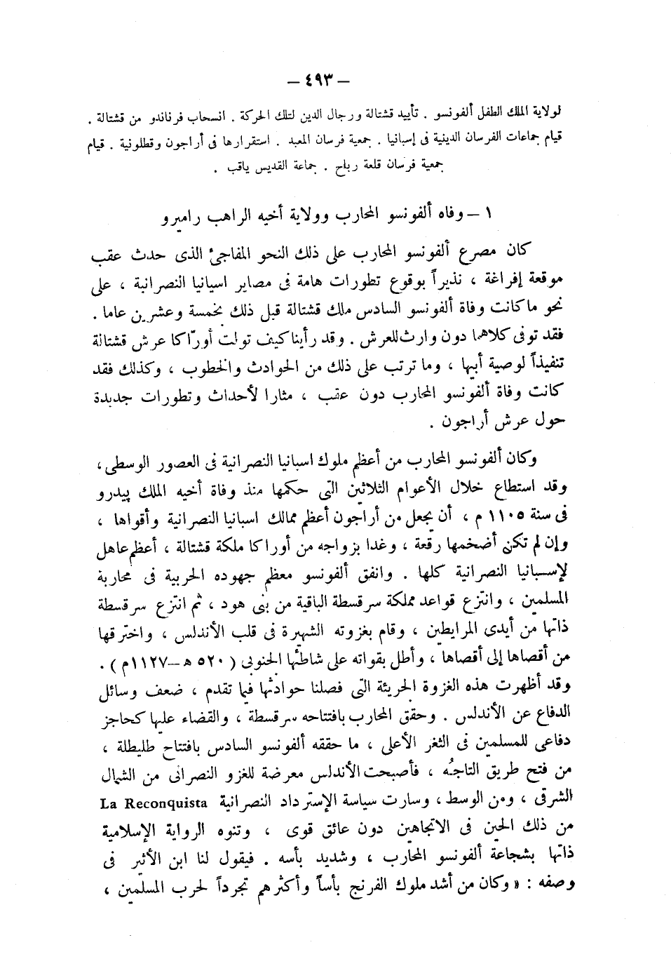 كان مصرع ألفونسو المحارب على ذلك النحو المفاجىء الذي حدث عقب موقعة إفراغة، نذيراً بوقوع تطورات هامة في مصاير اسبانيا النصرانية، على نحو ما كانت وفاة ألفونسو السادس ملك قشتالة قبل ذلك بخمسة وعشرين عاماً.