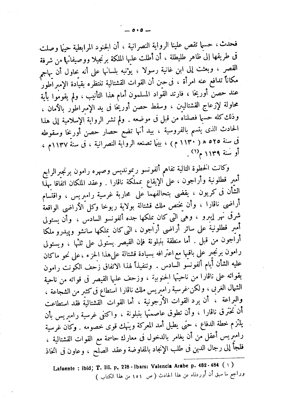 (¬1) Lafuente: ibid ; T. III. p. 228 - Ibars: Valencia Arabe p. 482 - 484 وراجع ما سبق أن أوردناه عن هذا الحادث (ص 151 من هذا الكتاب).