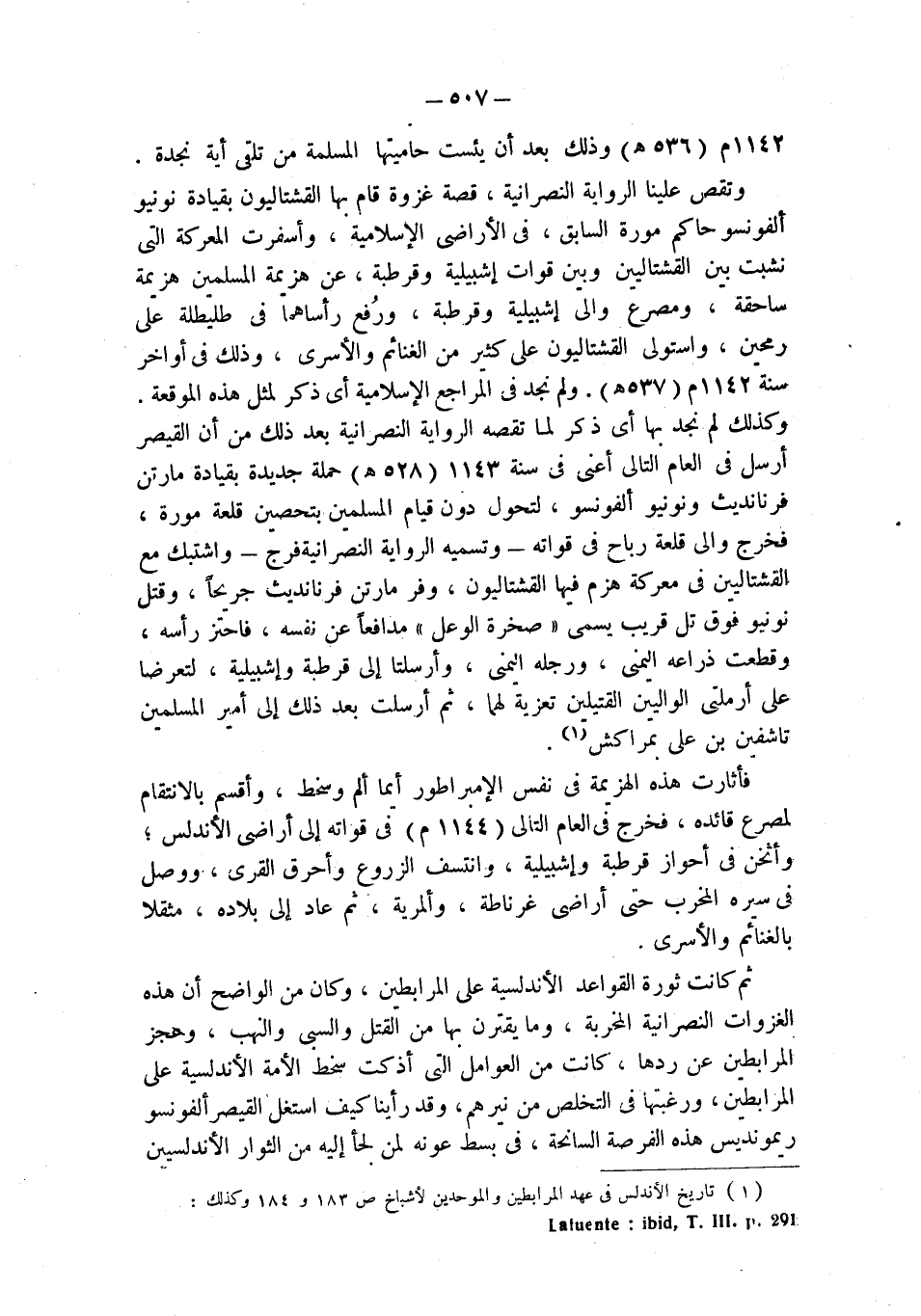 (¬1) تاريخ الأندلس في عهد المرابطين والموحدين لأشباخ ص 183 و 184 وكذلك: Lafuente: ibid ; T. III. p. 291