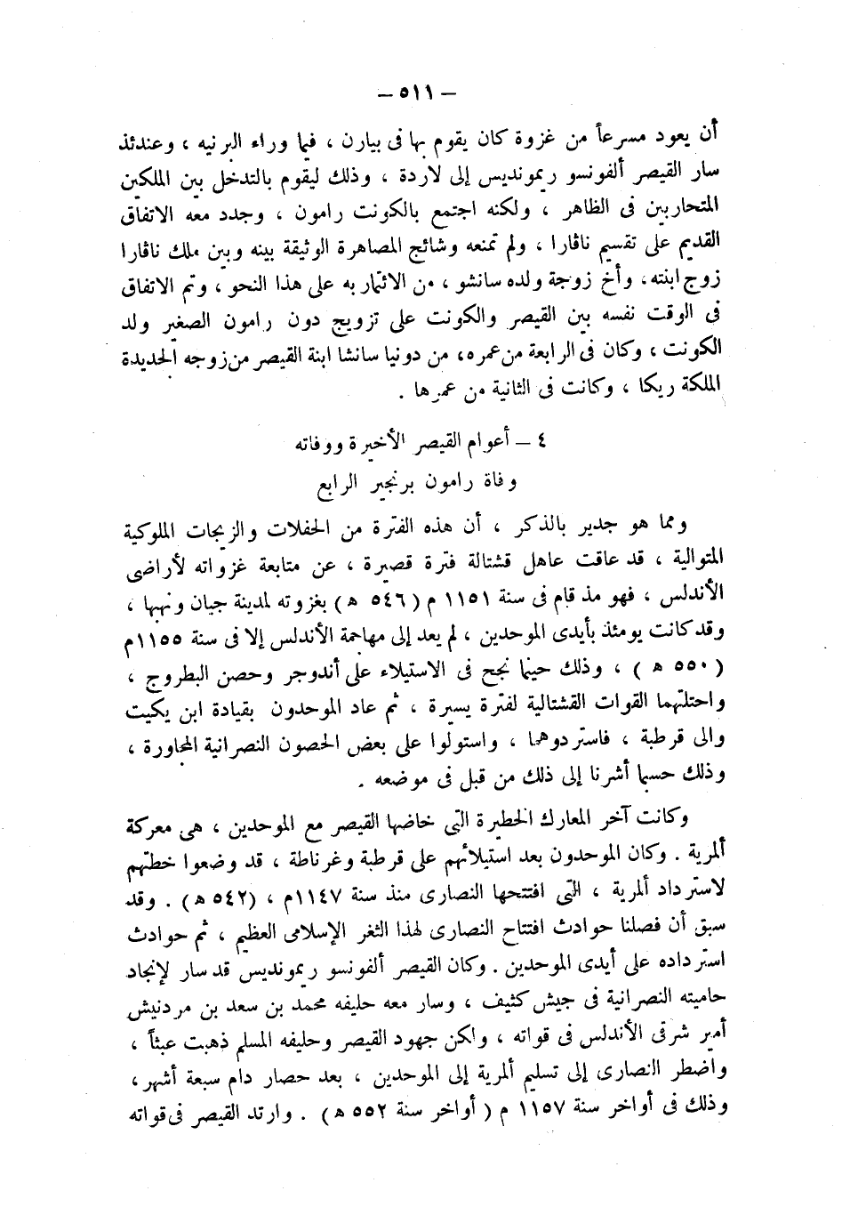 ومما هو جدير بالذكر، أن هذه الفترة من الحفلات والزيجات الملوكية المتوالية، قد عاقت عاهل قشتالة فترة قصيرة، عن متابعة غزواته لأراضي الأندلس، فهو مذ قام في سنة 1151 م (546 هـ) بغزوته، لمدينة جيان ونهبها، وقد كانت يومئذ بأيدي الموحدين، لم يعد إلى مهاجمة الأندلس إلا في سنة 1155 م (550 هـ)، وذلك حينما نجح في الاستيلاء على أندوجر وحصن البطروج، واحتلتهما القوات القشتالية لفترة يسيرة، ثم عاد الموحدون بقيادة ابن يكيت والي قرطبة، فاستردوهما، واستولوا على بعض الحصون النصرانية المجاورة، وذلك حسبما أشرنا إلى ذلك من قبل في موضعه.