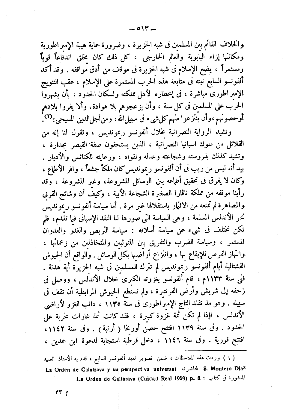 (¬1) وردت هذه الملاحظات، ضمن تصوير لعهد ألفونسو السابع، قدم به الأستاذ العميد S. Montero Diaz لمحاضرته La Orden de Calatrava y su perspectiva universal المنشورة في كتاب: La Orden de Calatrava (Ciudad Real 1959) p. 8