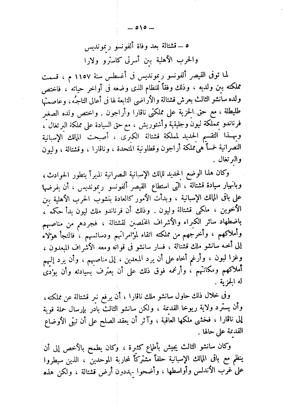 لما توفي القيصر ألفونسو ريمونديس في أغسطس سنة 1157 م، قسمت مملكته بين ولديه، وذلك وفقاً للنظام الذي وضعه في أواخر حياته، فاختص ولده سانشو الثالث بعرش قشتالة والأراضي التابعة لها في أعالي التاجُه، وعاصمتها طليطلة، مع حق الجزية على مملكتي نافارا وأراجون. واختص ولده الصغير فرناندو بمملكة ليون وجليقية وأشتوريش، مع حق السيادة على مملكة البرتغال، وبهذا التقسيم الجديد لمملكة قشتالة الكبرى، أصبحت الممالك الإسبانية النصرانية خمساً هي مملكة أراجون وقطلونية المتحدة، ونافارا، وقشتالة، وليون والبرتغال.