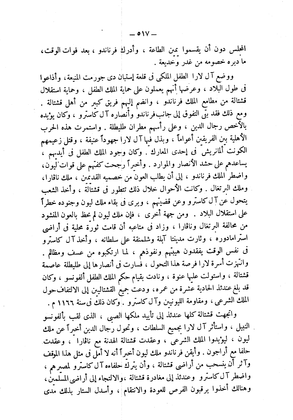 واتجهت قشتالة كلها عندئذ إلى تأييد ملكها الصبي، الذي لقب بألفونسو النبيل، واستأثر آل لارا بجميع السلطات، وتحول رجال الدين أخيراً عن ملك ليون، ليؤيدوا الملك الشرعي، وعقدت قشتالة الهدنة مع نافارا، وعقدت حلفاً مع أراجون. وأيقن فرناندو ملك ليون أخيراً أنه لا أمل في مثل هذا الموقف وآثر أن ينسحب من أراضي قشتالة، وأن يترك حلفاءه آل كاسترو لمصيرهم، واضطر آل كاسترو عندئذ إلى مغادرة قشتالة، والالتجاء إلى أراضي المسلمين، وهنالك أخذوا يرقبون الفرص للعودة والانتقام، وأسدل الستار بذلك مدى