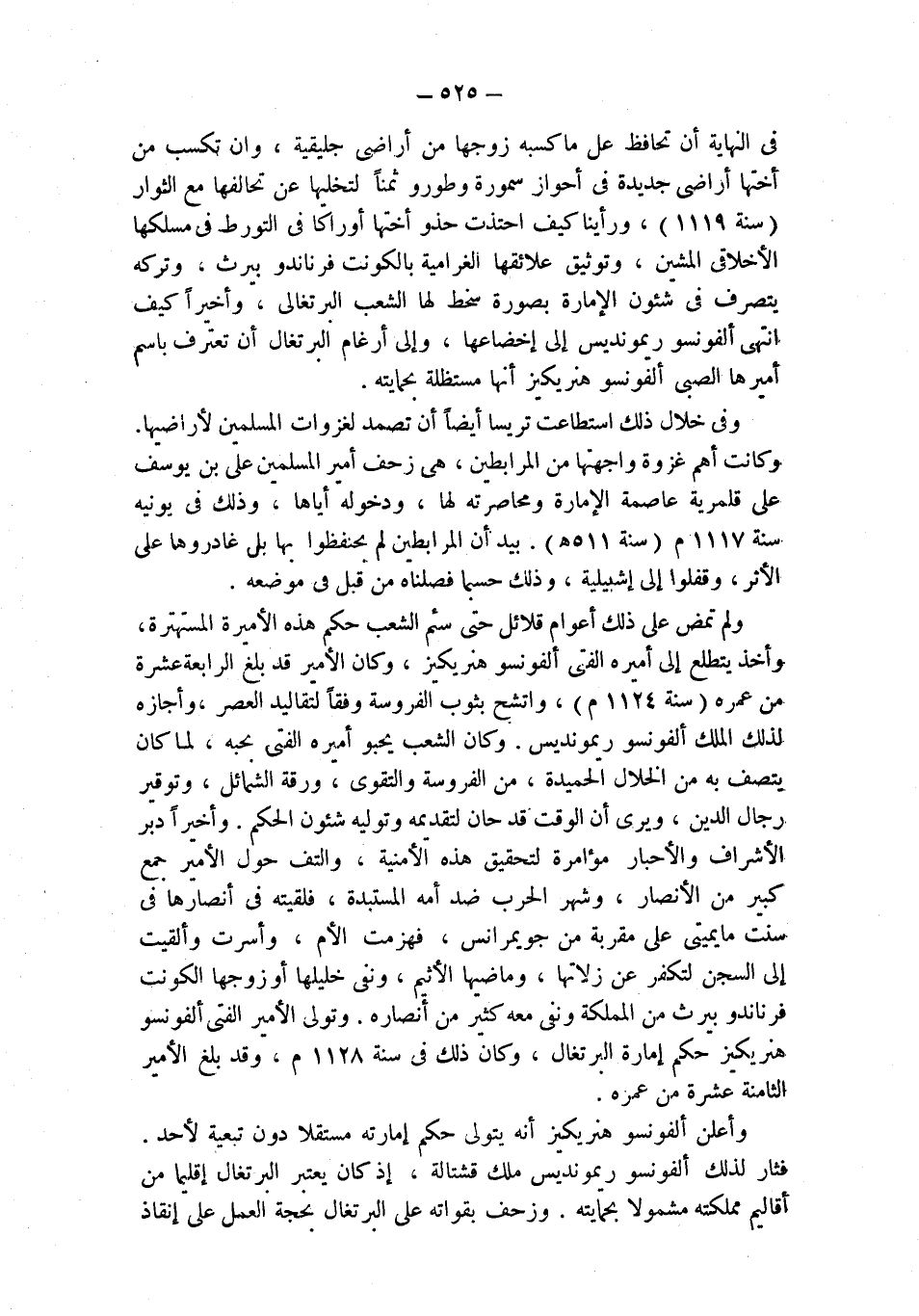 في النهاية أن تحافظ عل ما كسبه زوجها من أراضي جليقية، وأن تكسب من أختها أراضي جديدة في أحواز سمورة وطورو ثمناً لتخليها عن تحالفها مع الثوار (سنة 1119)، ورأينا كيف احتذت حذو أختها أوراكا في التورط في مسلكها الأخلاقي المشين، وتوثيق علائقها الغرامية بالكونت فرناندو بيرث، وتركه يتصرف في شئون الإمارة بصورة سخط لها الشعب البرتغالي، وأخيراً كيف انتهى ألفونسو ريمونديس إلى إخضاعها، وإلى أرغام البرتغال أن تعترف باسم أميرها الصبي ألفونسو هنريكيز أنها مستظلة بحمايته.