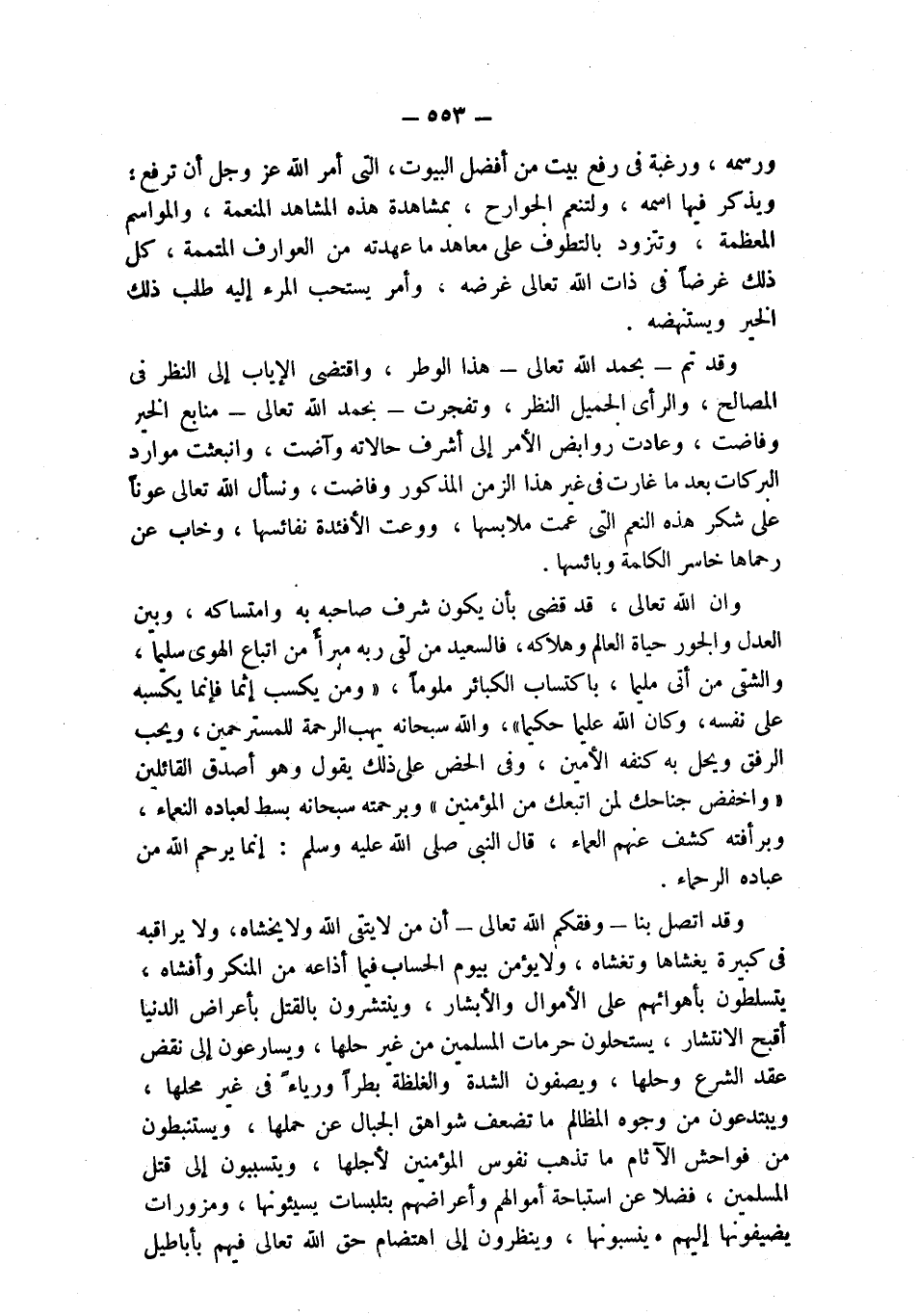 وقد اتصل بنا - وفقكم الله تعالى - أن من لا يتقي الله ولا يخشاه، ولا يراقبه في كبيرة يغشاها وتغشاه، ولا يؤمن بيوم الحساب فيما أذاعه من المنكر وأفشاه، يتسلطون بأهوائهم على الأموال والأبشار، وينتشرون بالقتل بأعراض الدنيا أقبح الانتشار، يستحلون حرمات المسلمين من غير حلها، ويسارعون إلى نقض عقد الشرع وحلها، ويصفون الشدة والغلظة بطراً ورياءً في غير محلها، ويبتدعون من وجوه المظالم ما تضعف شواهق الجبال عن حملها، ويستنبطون من فواحش الآثام ما تذهب نفوس المؤمنين لأجلها، ويتسببون إلى قتل المسلمين، فضلا عن استباحة أموالهم وأعراضهم بتلبسات يسيئونها، ومزورات يضيفونها إليهم وينسبونها، وينظرون إلى اهتضام حق الله تعالى فيهم بأباطيل