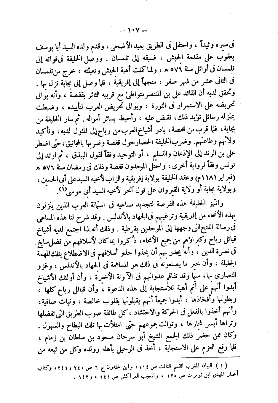 (¬1) البيان المغرب القسم الثالث ص 114، وابن خلدون ج 6 ص 240 و 241، وكتاب أخبار المهدي ابن تومرت ص 125، والمعجب للمراكشي ص 141، و 142.