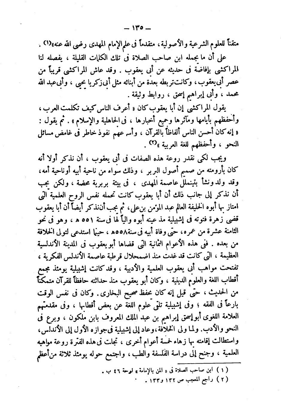 متقناً للعلوم الشرعية والأصولية، متقدماً في علم الإمام المهدي رضي الله عنه " (¬1). على أن ما يجمله ابن صاحب الصلاة في تلك الكلمات القليلة، يفصله لنا المراكشي بإفاضة في حديثه عن أبي يعقوب. وقد عاش المراكشي قريباً من عصر أبي يعقوب، وكانت تربطه بعدة من أبنائه مثل أبي زكريا يحيى، وأبي عبد الله محمد، وأبي إبراهيم إسحق، روابط وثيقة.