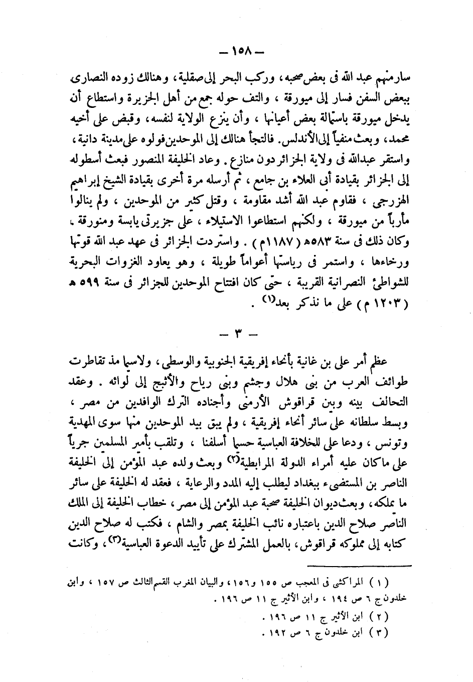 (¬1) المراكشي في المعجب ص 155 و 156، والبيان المغرب القسم الثالث ص 157، وابن خلدون ج 6 ص 194، وابن الأثير ج 11 ص 196.