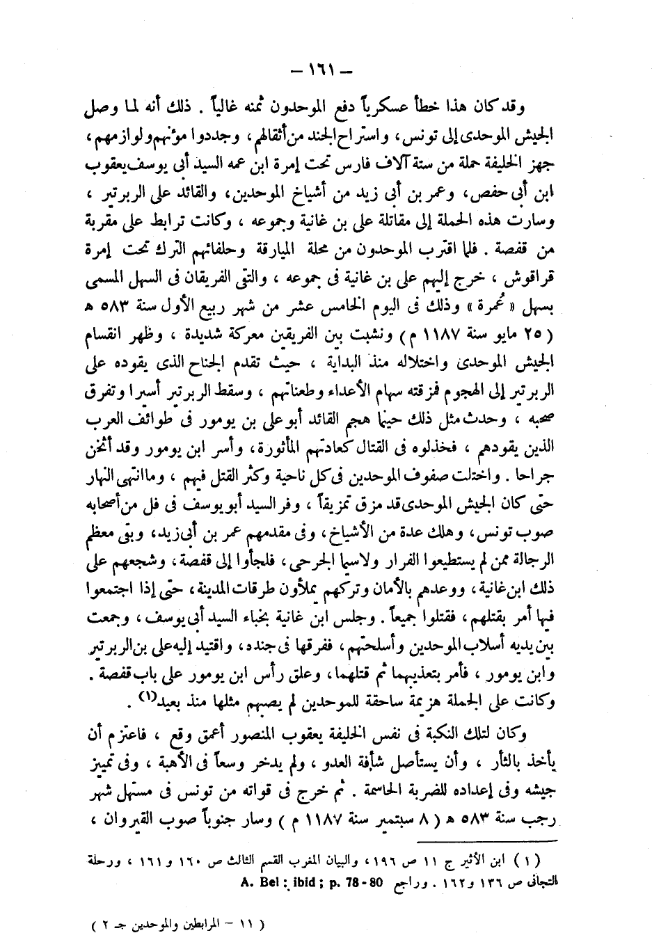 (¬1) ابن الأثير ج 11 ص 196، والبيان المغرب القسم الثالث ص 160 و 161، ورحلة التجاني ص 136 و 162. وراجع A. Bel: ibid ; p. 78 - 80