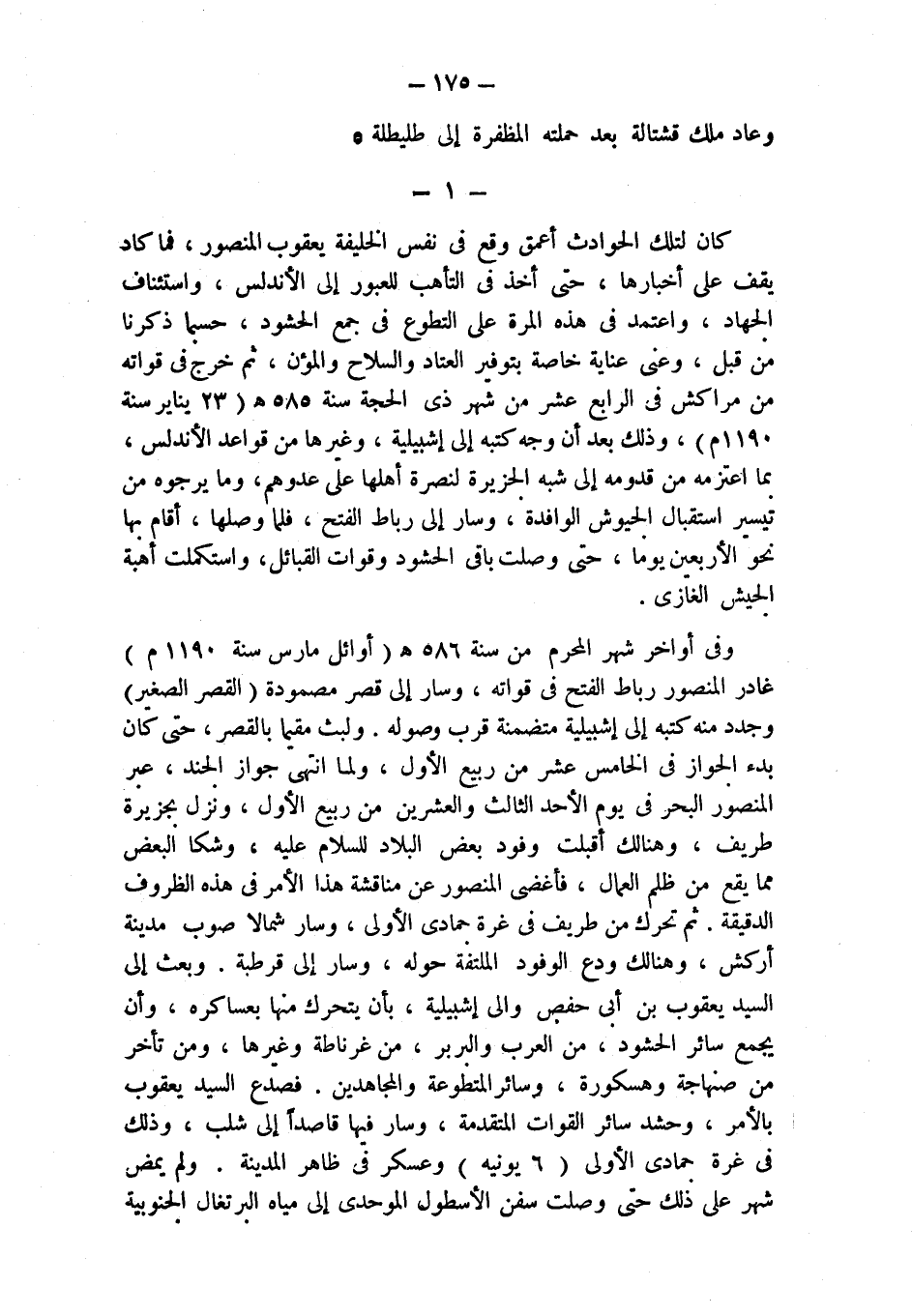 وفي أواخر شهر المحرم من سنة 586 هـ (أوائل مارس سنة 1190 م) غادر المنصور رباط الفتح في قواته، وسار إلى قصر مصمودة (القصر الصغير) وجدد منه كتبه إلى إشبيلية متضمنة قرب وصوله. ولبث مقيماً بالقصر، حتى كان بدء الجواز في الخامس عشر من ربيع الأول، ولما انتهى جواز الجند، عبر المنصور البحر في يوم الأحد الثالث والعشرين من ربيع الأول، ونزل بجزيرة طريف، وهنالك أقبلت وفود بعض البلاد للسلام عليه، وشكا البعض مما يقع من ظلم العمال، فأغضى المنصور عن مناقشة هذا الأمر في هذه الظروف الدقيقة. ثم تحرك من طريف في غرة جمادى الأولى، وسار شمالا صوب مدينة أركش، وهنالك ودع الوفود الملتفة حوله، وسار إلى قرطبة. وبعث إلى السيد يعقوب بن أبي حفص والي إشبيلية، بأن يتحرك منها بعساكره، وأن يجمع سائر الحشود، من العرب والبربر، من غرناطة وغيرها، ومن تأخر من صنهاجة وهسكورة، وسائر المتطوعة والمجاهدين. فصدع السيد يعقوب بالأمر، وحشد سائر القوات المتقدمة، وسار فيها قاصداً إلى شلب، وذلك في غرة جمادى الأولى (6 يونيه) وعسكر في ظاهر المدينة. ولم يمض شهر على ذلك حتى وصلت سفن الأسطول الموحدي إلى مياه البرتغال الجنوبية