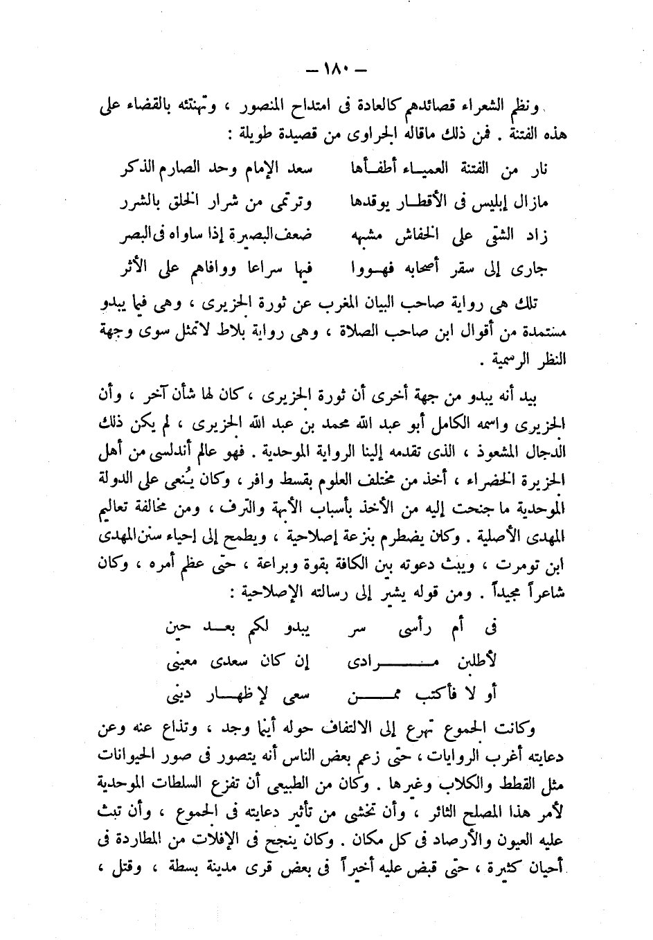 بيد أنه يبدو من جهة أخرى أن ثورة الجزيري، كان لها شأن آخر، وأن الجزيري واسمه الكامل أبو عبد الله محمد بن عبد الله الجزيري، لم يكن ذلك الدجال المشعوذ، الذي تقدمه إلينا الرواية الموحدية. فهو عالم أندلسي من أهل الجزيرة الخضراء، أخذ من مختلف العلوم قسط وافر، وكان يُنعي على الدولة الموحدية ما جنحت إليه من الأخذ بأسباب الأبهة والترف، ومن مخالفة تعاليم المهدي الأصلية. وكان يضطرم بنزعة إصلاحية، ويطمح إلى إحياء سنن المهدي ابن تومرت، ويبث دعوته بين الكافة بقوة وبراعة، حتى عظم أمره، وكان شاعراً مجيداً. ومن قوله يشير إلى رسالته الإصلاحية: