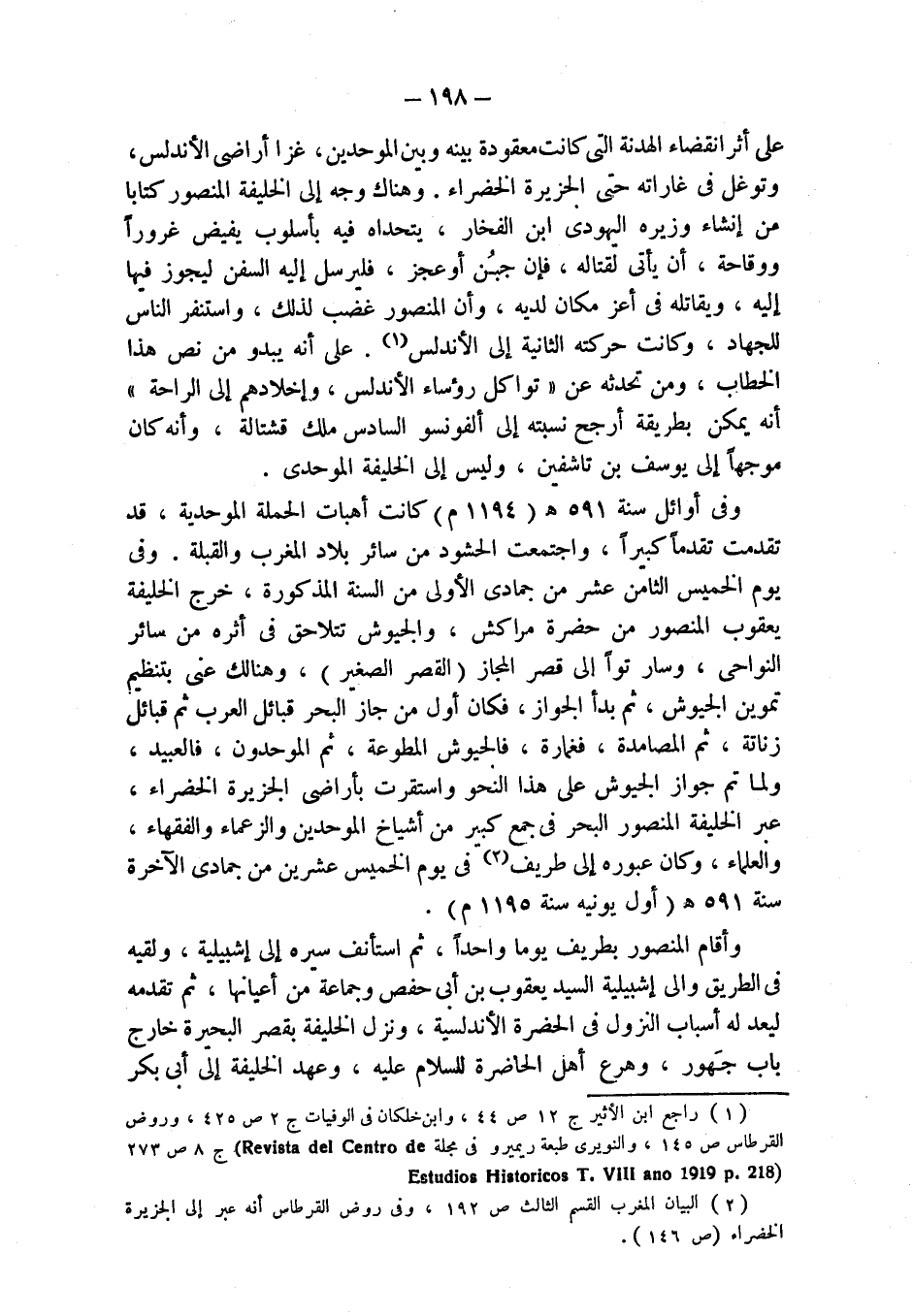 (¬1) راجع ابن الأثير ج 12 ص 44، وابن خلكان في الوفيات ج 2 ص 425، وروض القرطاس ص 145، والنويري طبعة ريميرو في مجلة ( Revista del Centro de ج 8 ص 273 Estudios Historicos T. VIII ano 1919 p. 218)