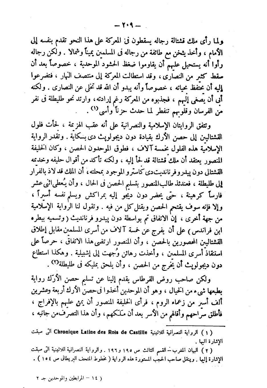 (¬1) الرواية النصرانية اللاتينية Chronique Latine des Rois de Castille التي سبقت الإشارة إليها.