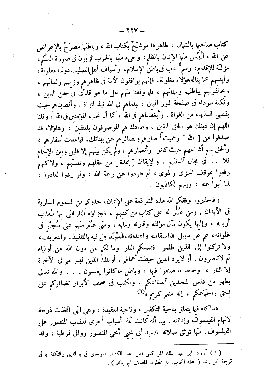 (¬1) أورد ابن عبد الملك المراكشي نص هذا الكتاب الموحدي في " الذيل والتكملة " في ترجمة ابن رشد (المجلد الخامس من مخطوط المتحف البريطاني).