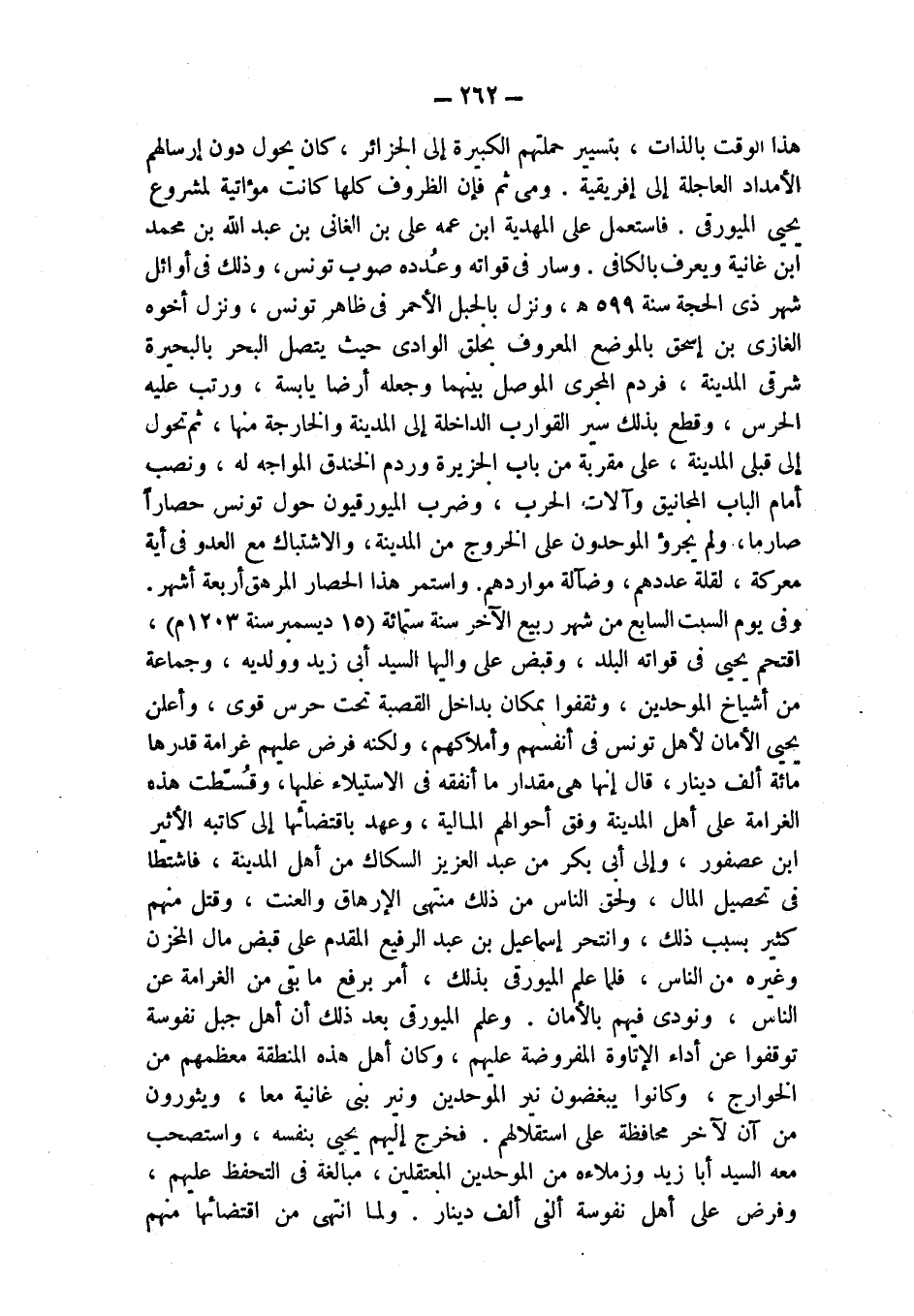 هذا الوقت بالذات، بتسيير حملتهم الكبيرة إلى الجزائر، كان يحول دون إرسالهم الأمداد العاجلة إلى إفريقية. ومن ثم فإن الظروف كلها كانت مؤاتية لمشروع يحيى الميورقي. فاستعمل على المهدية ابن عمه علي بن الغانى بن عبد الله بن محمد ابن غانية ويعرف بالكافى. وسار في قواته وعُدده صوب تونس، وذلك في أوائل شهر ذي الحجة سنة 599 هـ، ونزل بالجبل الأحمر في ظاهر تونس، ونزل أخوه الغازى بن إسحق بالموضع المعروف بحلق الوادي حيث يتصل البحر بالبحيرة شرق المدينة، فردم المجرى الموصل بينهما وجعله أرضاً يابسة، ورتب عليه الحرس، وقطع بذلك سير القوارب الداخلة إلى المدينة والخارجة منها، ثم تحول إلى قبلى المدينة، على مقربة من باب الجزيرة وردم الخندق المواجه له، ونصب أمام الباب المجانيق وآلات الحرب، وضرب الميورقيون حول تونس حصاراً صارماً، ولم يجرؤ الموحدون على الخروج من المدينة، والاشتباك مع العدو في أية معركة، لقلة عددهم، وضآلة مواردهم. واستمر هذا الحصار المرهق أربعة أشهر. وفي يوم السبت السابع من شهر ربيع الآخر سنة ستمائة (15 ديسمبر سنة 1203 م)، اقتحم يحيى في قواته البلد، وقبض على واليها السيد أبي زيد وولديه، وجماعة من أشياخ الموحدين، وثقفوا بمكان بداخل القصبة تحت حرس قوي، وأعلن يحيى الأمان لأهل تونس في أنفسهم وأملاكهم، ولكنه فرض عليهم غرامة قدرها مائة ألف دينار، قال إنها هي مقدار ما أنفقه في الاستيلاء عليها، وقُسّطت هذه الغرامة على أهل المدينة وفق أحوالهم المادية، وعهد باقتضائها إلى كاتبه الأثير ابن عصفور، وإلى أبي بكر بن عبد العزيز السكاك من أهل المدينة، فاشتطا في تحصيل المال، ولحق الناس من ذلك منتهى الإرهاق والعنت، وقتل منهم كثير بسبب ذلك، وانتحر إسماعيل بن عبد الرفيع المقدم على قبض مال المخزن وغيره من الناس، فلما علم الميورقي بذلك، أمر برفع ما بقى من الغرامة عن الناس، ونودى فيهم بالأمان. وعلم الميورقي بعد ذلك أن أهل جبل نفوسة توقفوا عن أداء الإتاوة المفروضة عليهم، وكان أهل هذه المنطقة معظمهم من الخوارج، وكانوا يبغضون نير الموحدين ونير بني غانية معاً، ويثورون من آن لآخر محافظة على استقلالهم. فخرج إليهم يحيى بنفسه، واستصحب معه السيد أبا زيد وزملاءه من الموحدين المعتقلين، مبالغة في التحفظ عليهم، وفرض على أهل نفوسة ألفى ألف دينار. ولما انتهى من اقتضائها منهم
