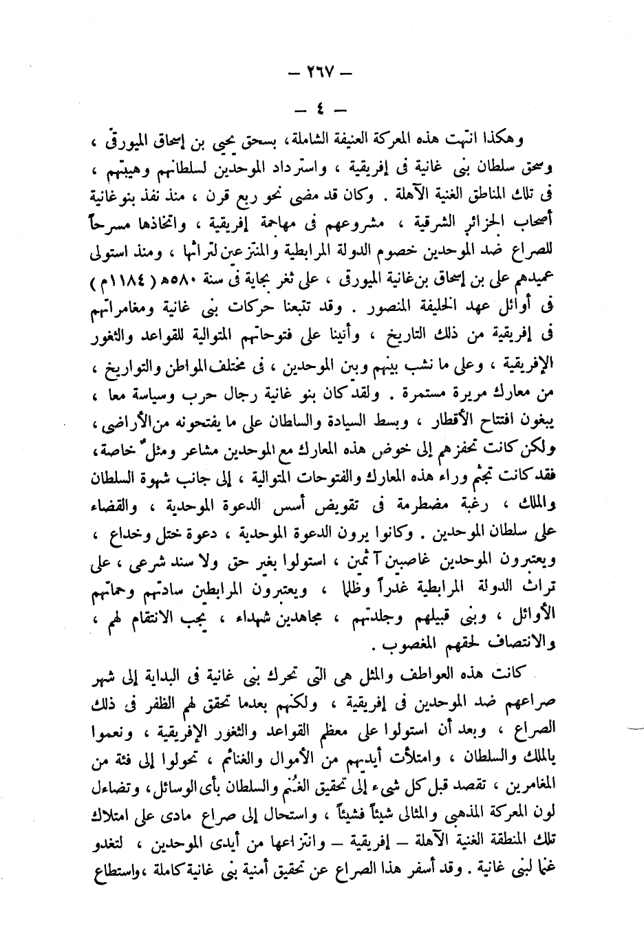 وهكذا انتهت هذه المعركة العنيفة الشاملة، بسحق يحيى بن إسحاق الميورقي، وسحق سلطان بني غانية في إفريقية، واسترداد الموحدين لسلطانهم وهيبتهم، في تلك المناطق الغنية الآهلة. وكان قد مضى نحو ربع قرن، منذ نفذ بنو غانية أصحاب الجزائر الشرقية، مشروعهم في مهاجمة إفريقية، واتخاذها مسرحاً للصراع ضد الموحدين خصوم الدولة المرابطية والمنتزعين لتراثها، ومنذ استولى عميدهم علي بن إسحاق بن غانية الميورقي، على ثغر بجاية في سنة 580 هـ (1184 م) في أوائل عهد الخليفة المنصور. وقد تتبعنا حركات بني غانية ومغامراتهم في إفريقية من ذلك التاريخ، وأتينا على فتوحاتهم المتوالية للقواعد والثغور الإفريقية، وعلى ما نشب بينهم وبين الموحدين، في مختلف المواطن والتواريخ، من معارك مريرة مستمرة. ولقد كان بنو غانية رجال حرب وسياسة معاً، يبغون افتتاح الأقطار، وبسط السيادة والسلطان على ما يفتحونه من الأراضي، ولكن كانت تحفزهم إلى خوض هذه المعارك مع الموحدين مشاعر ومثلٌ خاصة، فقد كانت تجثم وراء هذه المعارك والفتوحات المتوالية، إلى جانب شهوة السلطان والملك، رغبة مضطرمة في تقويض أسس الدعوة الموحدية، والقضاء على سلطان الموحدين. وكانوا يرون الدعوة الموحدية، دعوة ختل وخداع، ويعتبرون الموحدين غاصبين آثمين، استولوا بغير حق ولا سند شرعى، على تراث الدولة المرابطية غدراً وظلماً، ويعتبرون المرابطين سادتهم وحماتهم الأوائل، وبنى قبيلهم وجلدتهم، مجاهدين شهداء، يجب الانتقام لهم، والانتصاف لحقهم المغصوب.