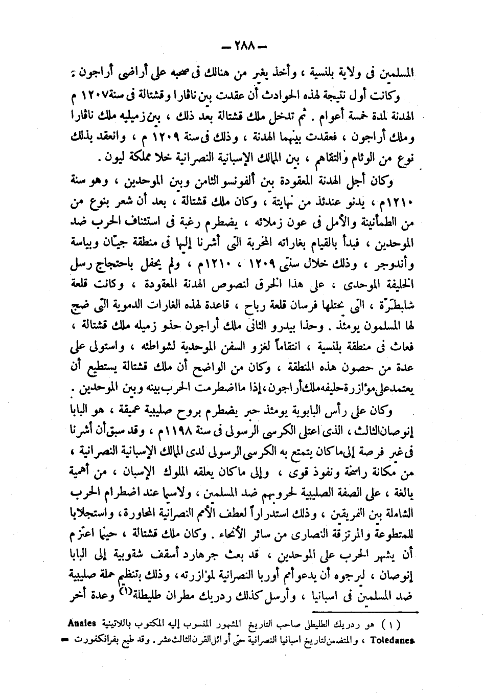 (¬1) هو ردريك الطليطلي صاحب التاريخ المشهور المنسوب إليه المكتوب باللاتينية Anales Toledanes، والمتضمن لتاريخ اسبانيا النصرانية حتى أوائل القرن الثالث عشر. وقد طبع بفرانكفورت =