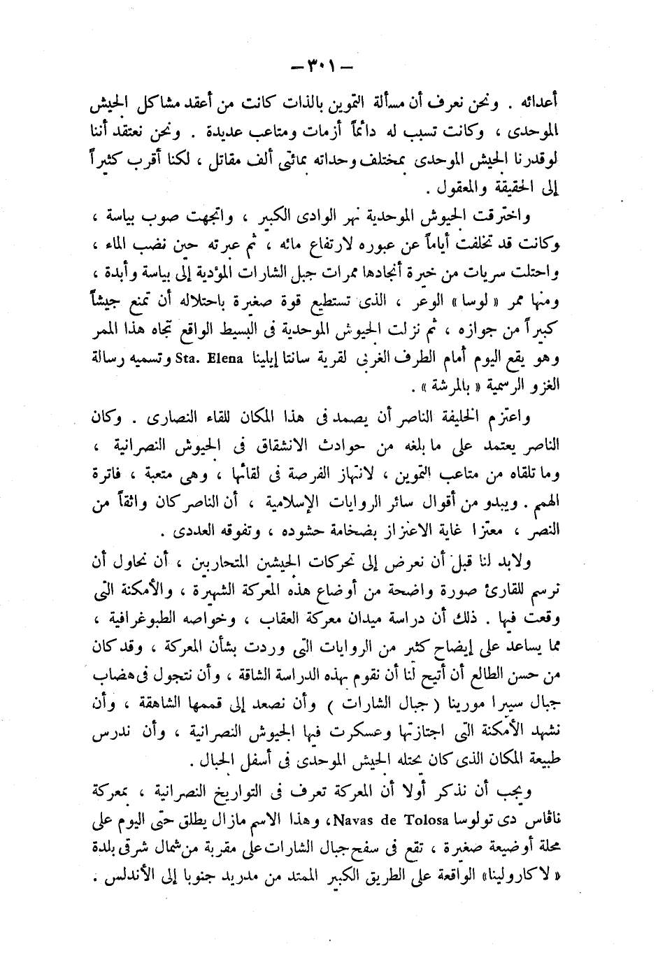 ولابد لنا قبل أن نعرض إلى تحركات الجيشين المتحاربين، أن نحاول أن نرسم للقارئ صورة واضحة من أوضاع هذه المعركة الشهيرة، والأمكنة التي وقعت فيها. ذلك أن دراسة ميدان معركة العقاب، وخواصه الطبوغرافية، مما يساعد على إيضاح كثير من الروايات التي وردت بشأن المعركة، وقد كان من حسن الطالع أن أتيح لنا أن نقوم بهذه الدراسة الشاقة، وأن نتجول في هضاب جبال سييرا مورينا (جبال الشارات) وأن نصعد إلى قممها الشاهقة، وأن نشهد الأمكنة التي اجتازتها وعسكرت فيها الجيوش النصرانية، وأن ندرس طبيعة المكان الذي كان يحتله الجيش الموحدي في أسفل الجبال.