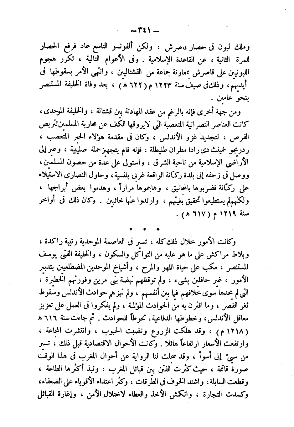 وكانت الأمور خلال ذلك كله، تسير في العاصمة الموحدية رتيبة راكدة، وبلاط مراكش على ما هو عليه من التواكل والسكون، والخليفة الفتى يوسف المستنصر، مكب على حياة اللهو والمرح، وأشياخ الموحدين المضطلعين بتدبير الأمور، غير حافلين بشىء، ولم توقظهم نهضة بني مرين وفورتهم الخطيرة، التي لم يحدها سوى خلافهم فيما بين أنفسهم، ولم تهزهم حوادث الأندلس وسقوط ثغر القصر، وما اقترن به من الحوادث المؤلمة، ولم يفكروا في العمل على تعزيز معاقل الأندلس، وخطوطها الدفاعية، تحوطاً للحوادث. ثم جاءت سنة 616 هـ (1218 م)، وقد هلكت الزروع ونضبت الحبوب، وانتشرت المجاعة، وارتفعت الأسعار ارتفاعاً هائلا. وكانت الأحوال الاقتصادية قبل ذلك، تسير من سيىء إلى أسوأ، وقد سجلت لنا الرواية عن أحوال المغرب في هذا الوقت صورة قاتمة، حيث كثرت الفتن بين قبائل المغرب، ونبذ أكثرها الطاعة، وقطعت السابلة، واشتد الخوف في الطرقات، وكثر اعتداء الأقوياء على الضعفاء، وكسدت التجارة، وانكمش الأخذ والعطاء لاختلال الأمن، وإغارة القبائل