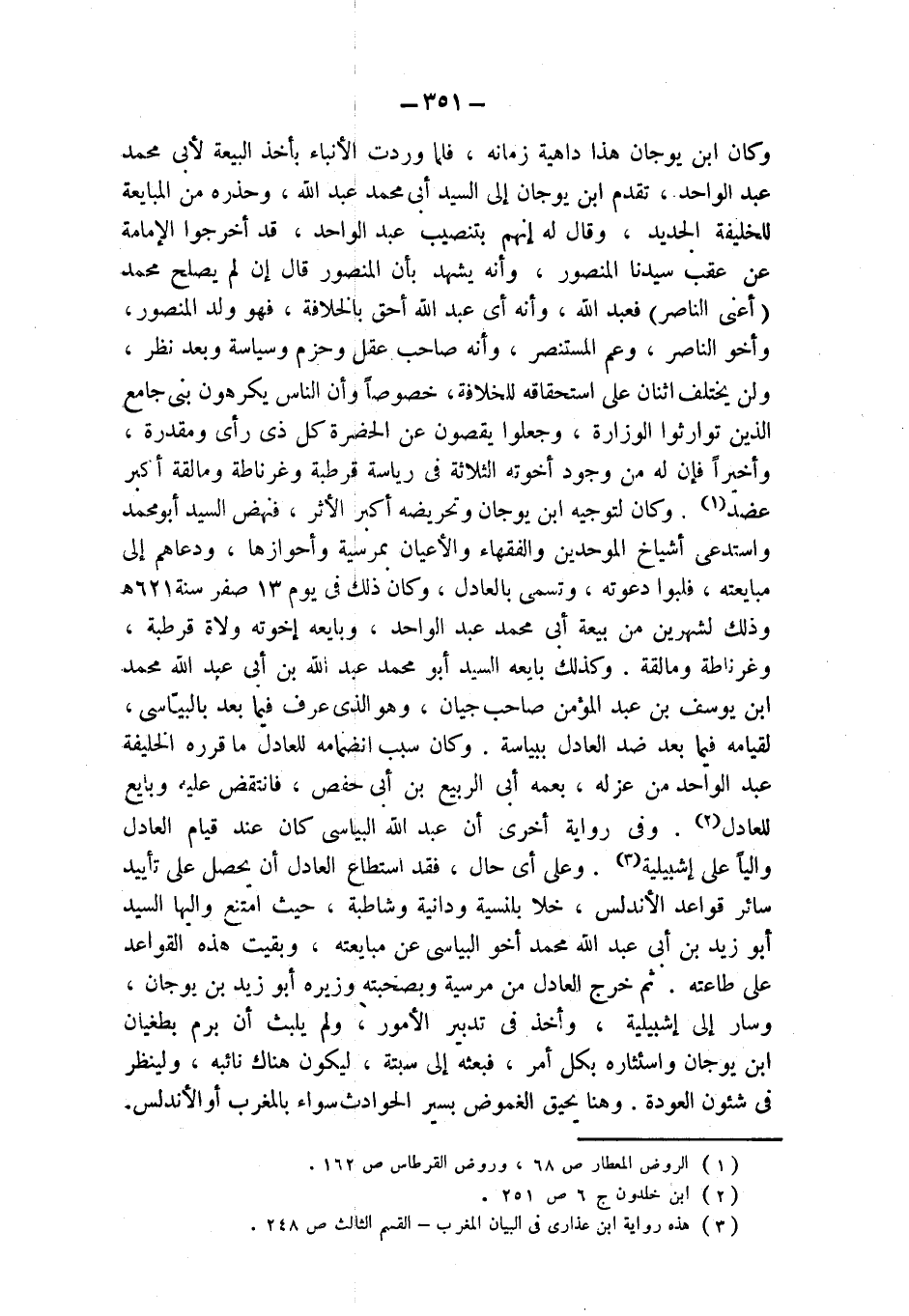 (¬3) هذه رواية ابن عذارى في البيان المغرب - القسم الثالث ص 248.