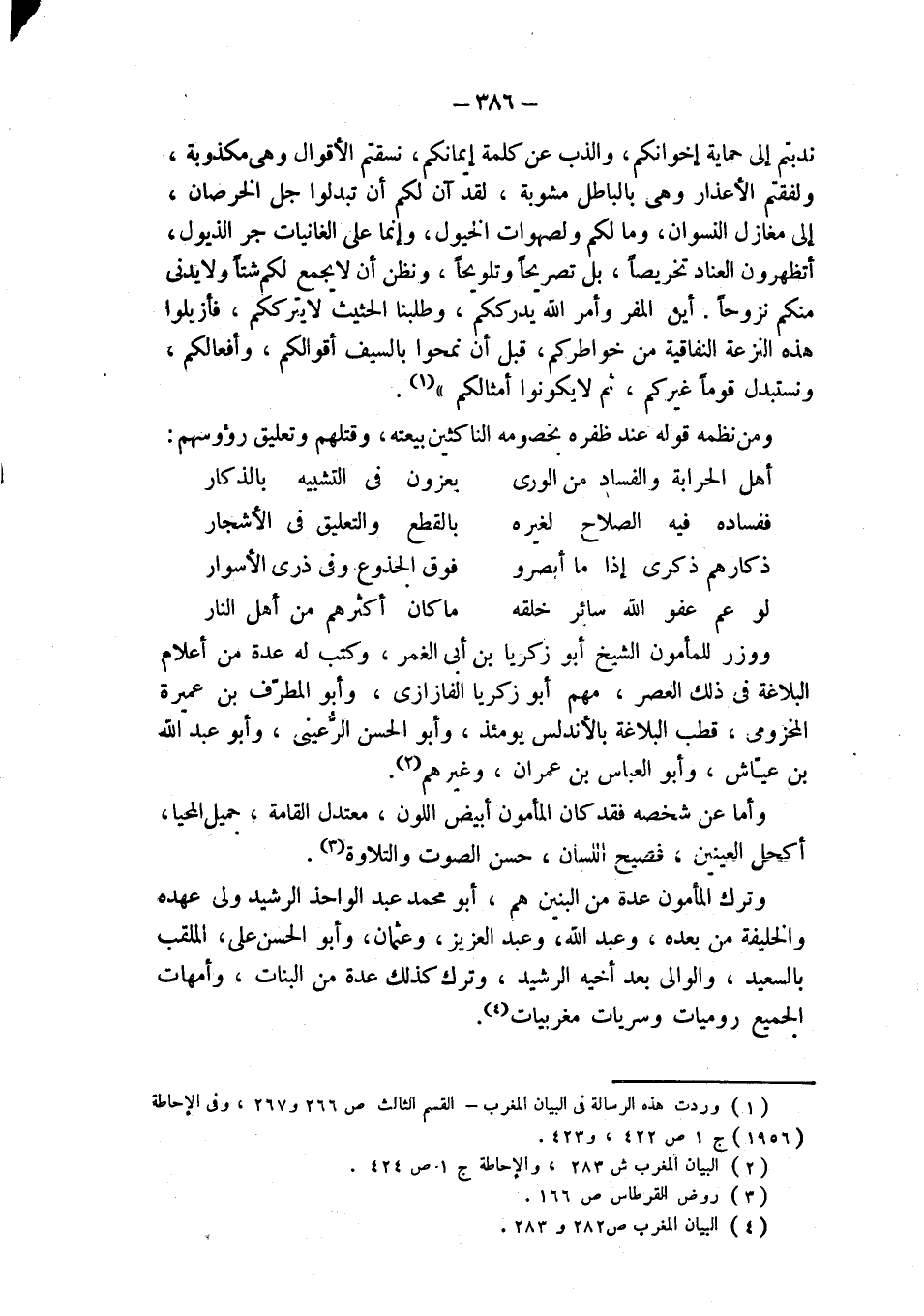 (¬1) وردت هذه الرسالة في البيان المغرب - القسم الثالث ص 266 و 267، وفي الإحاطة (1956) ج 1 ص 422، و 423.