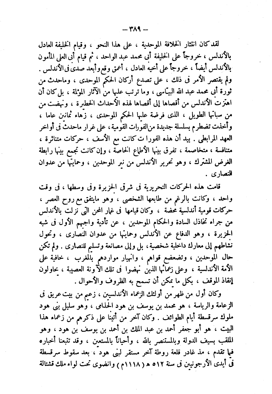وكان أول من ظهر من أولئك الزعماء الأندلسيين، زعيم من بيت عريق في الزعامة والرياسة، هو محمد بن يوسف بن هود الجذامى، وهو سليل بني هود ملوك سرقسطة أيام الطوائف. وكان آخر من أتينا على ذكرهم من زعماء هذا البيت، هو أبو جعفر أحمد بن عبد الملك بن أحمد بن يوسف بن هود، وهو الملقب بسيف الدولة وبالمستنصر بالله، وأحياناً بالمستعين، وقد تتبعنا أخباره فيما تقدم، مذ غادر قلعة روطة آخر مستقر لبني هود، بعد سقوط سرقسطة في أيدي الأرجونيين في سنة 512 هـ (1118 م) وانضوى تحت لواء ملك قشتالة