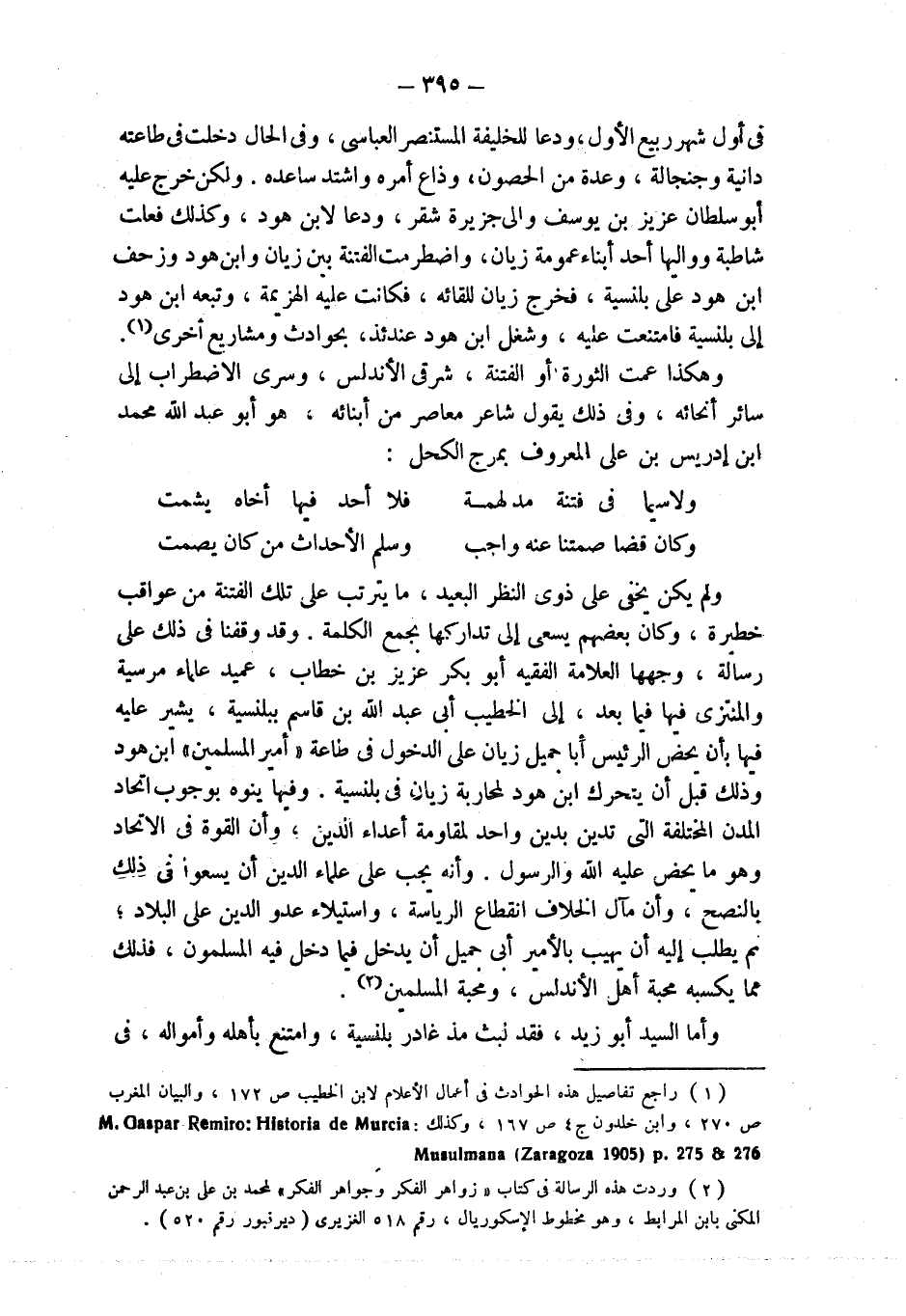 (¬1) راجع تفاصيل هذه الحوادث في أعمال الأعلام لابن الخطيب ص 172، والبيان المغرب ص 270، وابن خلدون ج 4 ص 167، وكذلك: M. Gaspar Remiro: Historia de Murcia