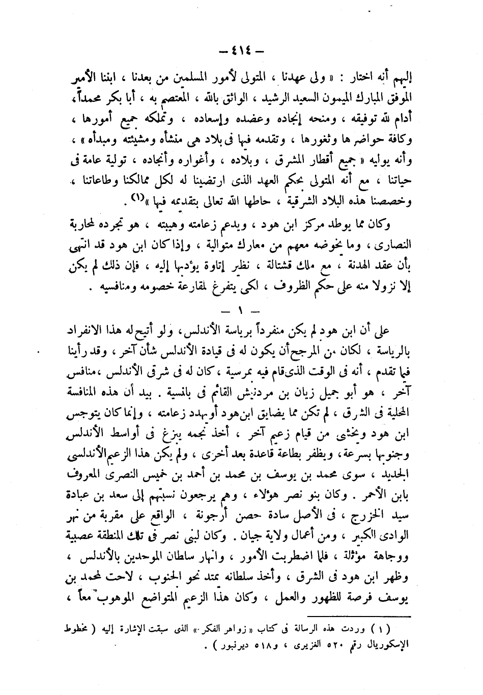(¬1) وردت هذه الرسالة في كتاب " زواهر الفكر " الذي سبقت الإشارة إليه (مخطوط الإسكوريال رقم 520 الغزيرى، و 518 ديرنبور).