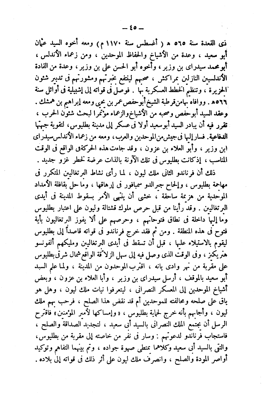 ذلك أن فرناندو الثاني ملك ليون، لما رأى نشاط البرتغاليين المتكرر في مهاجمة بطليوس، وإلحاح جيرالدو سمبافور في إرهاقها، وما حل بقافلة الأمداد الموحدية من هزيمة ساحقة، خشى أن ينتهي الأمر بسقوط المدينة في أيدي البرتغاليين. وقد رأينا من قبل حرص ملوك قشتالة وليون على اعتبار بطليوس وما إليها داخلة في نطاق فتوحاتهم، وحرصهم على ألا يفوز البرتغاليون بأية فتوح في هذه المنطقة. ومن ثم فقد خرج فرناندو في قواته قاصداً إلى بطليوس ليقوم بالاستيلاء عليها، قبل أن تسقط في أيدي البرتغاليين ومليكهم ألفونسو هنريكيز، وفي الوقت الذي وصل فيه إلى سهل الزلاّقة الواقع شمال شرقي بطليوس على مقربة من نهر وادي يانه، اقترب الموحدون من المدينة، ولما علم السيد أبو سعيد بالموقف، أرسل سيدراى بن وزير، وأبا العلاء بن عزون، وبعض أشياخ الموحدين إلى المعسكر النصراني، ليتعرفوا نيات ملك ليون، وهل هو باق على صلحه ومحالفته للموحدين أم قد نقض هذا الصلح، فرحب بهم ملك ليون، وأجابهم بأنه خرج لحماية بطليوس، " وإمساكها لأمير المؤمنين " فاقترح الرسل أن يجتمع الملك النصراني بالسيد أبي سعيد، لتجديد الصداقة والصلح، فاستجاب فرناندو لدعوتهم، وسار في نفر من خاصته إلى مقربة من بطليوس، والتقى بالسيد أبي سعيد وكلاهما ممتطى صهوة جواده، وتم بينهما التفاهم وتوكيد أواصر المودة والصلح، وانصرف ملك ليون على أثر ذلك في قواته إلى بلاده.