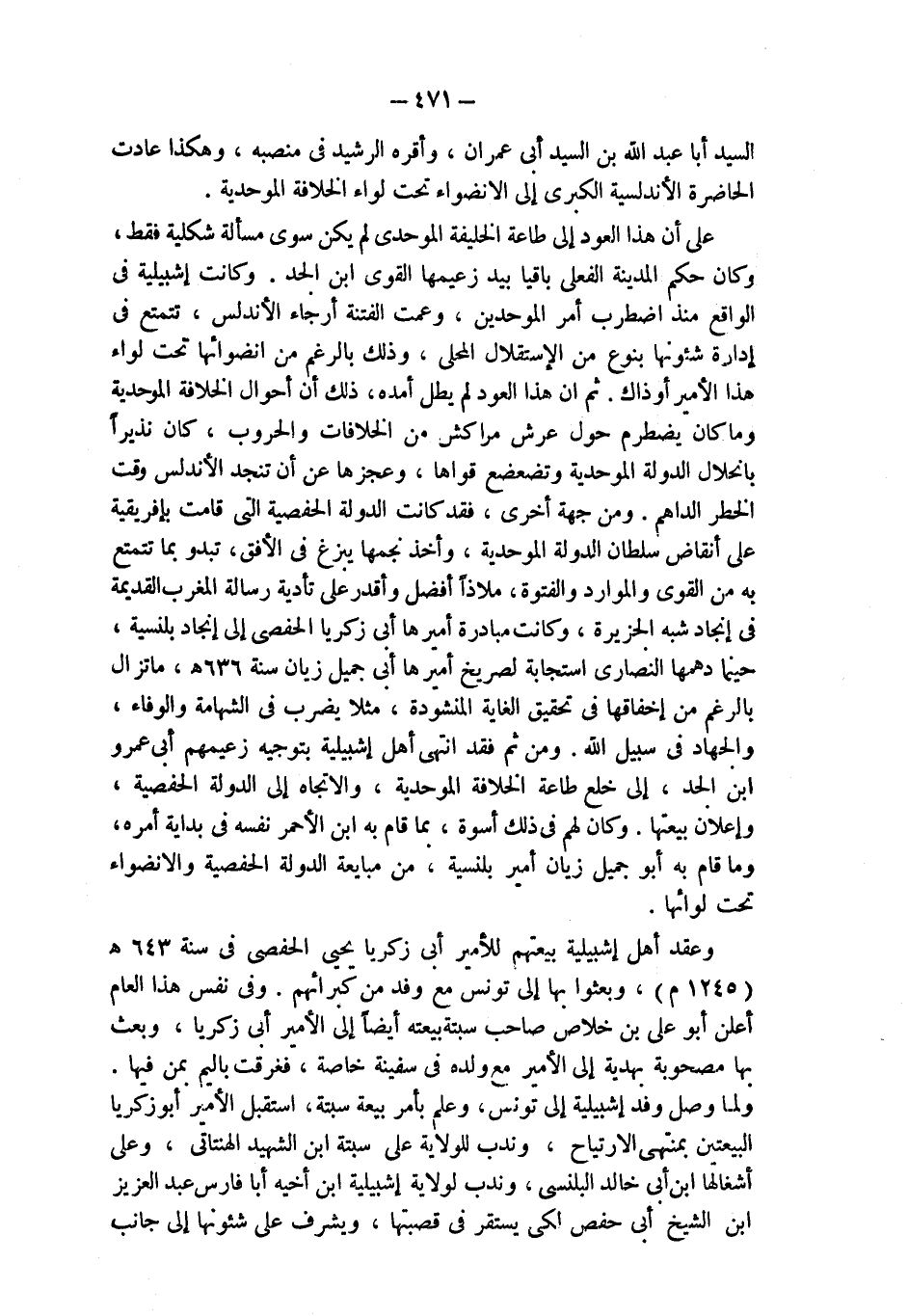 على أن هذا العود إلى طاعة الخليفة الموحدي لم يكن سوى مسألة شكلية فقط، وكان حكم المدينة الفعلي باقيا بيد زعيمها القوي ابن الجد. وكانت إشبيلية في الواقع منذ اضطرب أمر الموحدين، وعمت الفتنة أرجاء الأندلس، تتمتع في إدارة شئونها بنوع من الإستقلال المحلي، وذلك بالرغم من انضوائها تحت لواء هذا الأمير أو ذاك. ثم إن هذا العود لم يطل أمده، ذلك أن أحوال الخلافة الموحدية وما كان يضطرم حول عرش مراكش من الخلافات والحروب، كان نذيراً بانحلال الدولة الموحدية وتضعضع قواها، وعجزها عن أن تنجد الأندلس وقت الخطر الداهم. ومن جهة أخرى، فقد كانت الدولة الحفصية التي قامت بإفريقية على أنقاض سلطان الدولة الموحدية، وأخذ نجمها يبزغ في الأفق، تبدو بما تتمتع به من القوي والموارد والفتوة، ملاذاً أفضل وأقدر على تأدية رسالة المغرب القديمة في إنجاد شبه الجزيرة، وكانت مبادرة أميرها أبي زكريا الحفصى إلى إنجاد بلنسية، حينما دهمها النصارى استجابة لصريخ أميرها أبي جميل زيان سنة 636 هـ، ماتزال بالرغم من إخفاقها في تحقيق الغاية المنشودة، مثلا يضرب في الشهامة والوفاء، والجهاد في سبيل الله. ومن ثم فقد انتهى أهل إشبيلية بتوجيه زعيمهم أبي عمرو ابن الجد، إلى خلع طاعة الخلافة الموحدية، والاتجاه إلى الدولة الحفصية، وإعلان بيعتها. وكان لهم في ذلك أسوة، بما قام به ابن الأحمر نفسه في بداية أمره، وما قام به أبو جميل زيان أمير بلنسية، من مبايعة الدولة الحفصية والانضواء تحت لوائها.