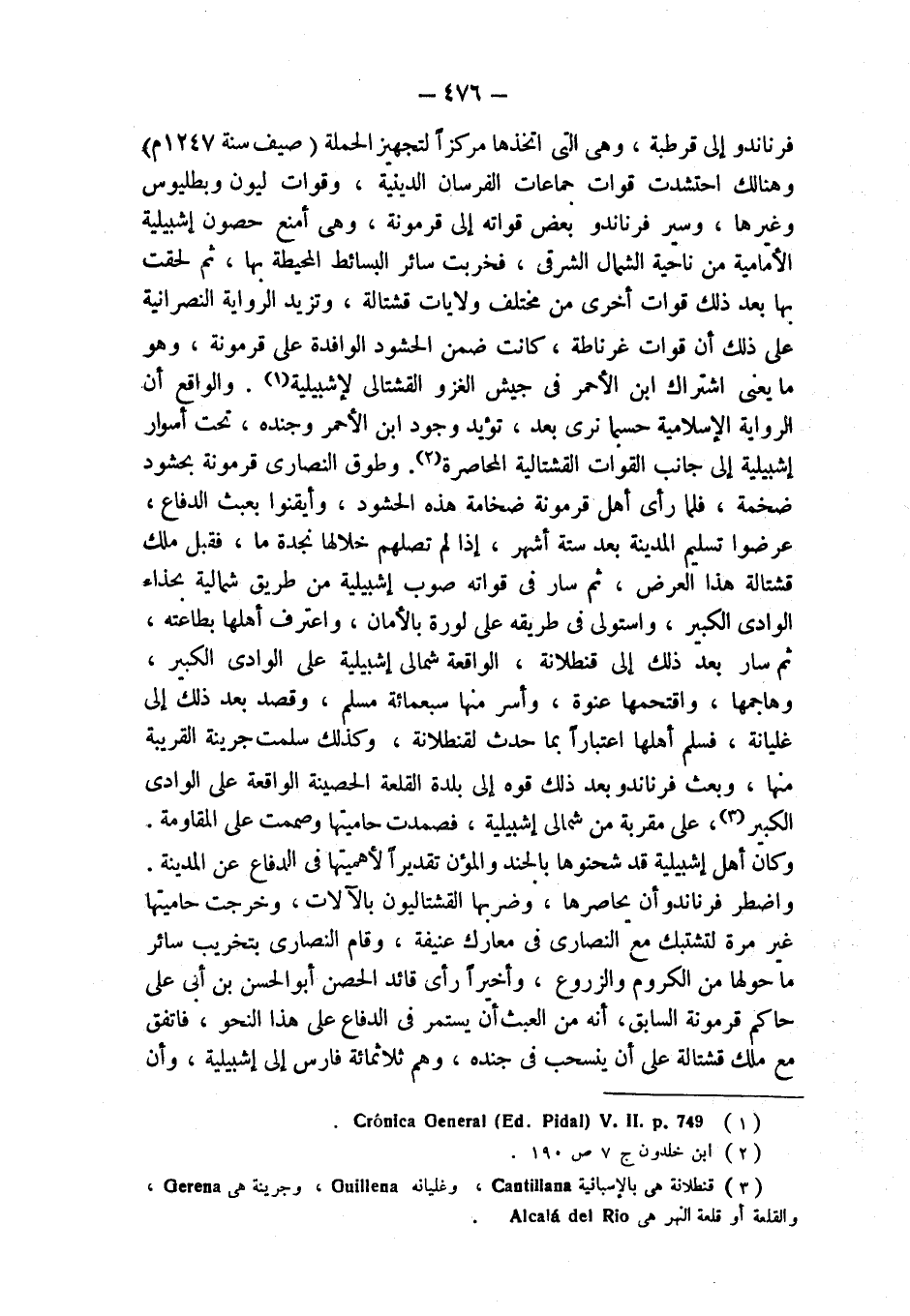 (¬3) قنطلانة هي بالإسبانية Cantillana، وغليانه Guillena، وجرينة هي Gerena، والقلعة أو قلعة النهر هي Alcala del Rio
