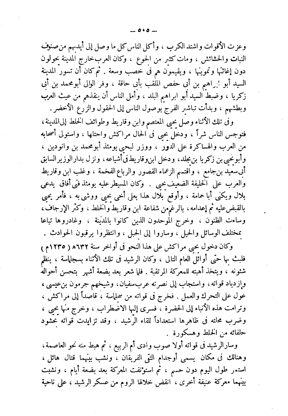 وكان دخول يحيى مراكش على هذا النحو في أواخر سنة 632 هـ (1235 م) فلبث بها حتى أوائل العام التالي، وكان الرشيد في تلك الأثناء بسجلماسة، ينظم شئونه، ويتخذ أهبته للمعركة المرتقبة. فلما شعر بعد بضعة أشهر بتحسن أحواله وازدياد قواته، واستجاب إلى نصرته عرب سفيان، وشيخهم جرمون بن عيسى، عول على التحرك والعمل. فخرج في قواته من سجلماسة، قاصداً إلى مراكش، وترامت هذه الأنباء إلى الحضرة، فسرى إليها الاضطراب، وخرج منها يحيى، وضرب محلته في ظاهرها استعداداً للقاء الرشيد، وقد تزايدت قواته بحشود حلفائه من الخلط وهسكورة.